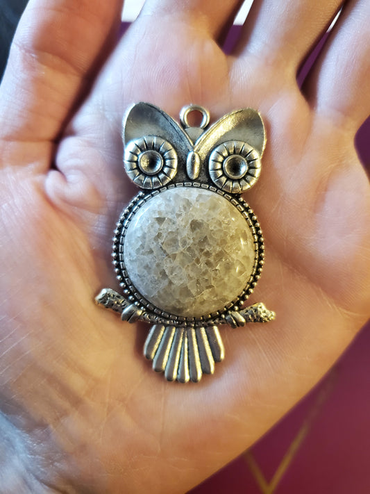 Granular Quartz Owl Pendant - 25mm Round Cab