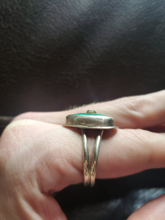 Malachite with inset Topaz Ring, Size 10 - Sterling Silver Smithed Setting