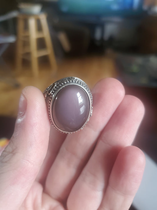 Pink Rainbow Obsidian Adjustable Ring - Sterling Silver