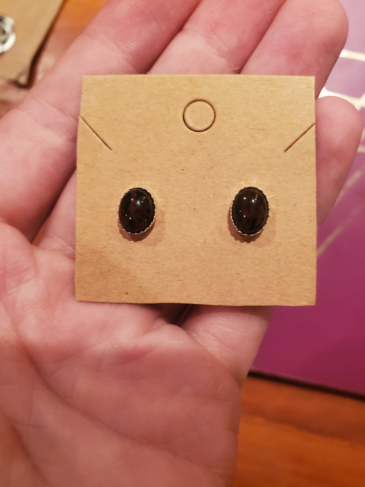 Mahogany Obsidian Earrings, 10mm Cabs, Silver Settings