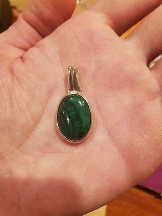 Iridescent Malachite Necklace Pendant - 18x13mm Cab, Sterling Silver Setting