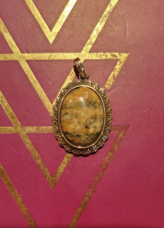 Montana City Popeye Jasper Bi-Color Necklace Pendant, 22x18mm Cab, Silver Setting