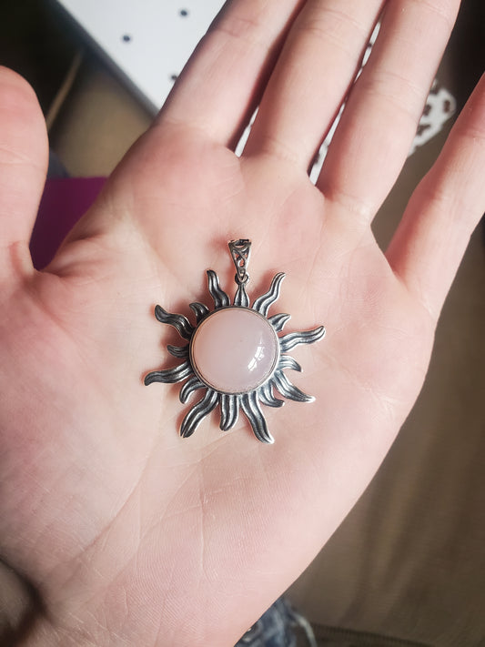 Nevada Pink Agatized Limbcast Pendant - Silver Sun Setting, 16mm Round
