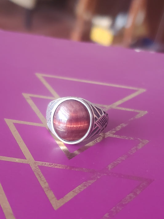 Red Tiger's Eye Adjustable Ring - Silver, 12mm Oval Cab