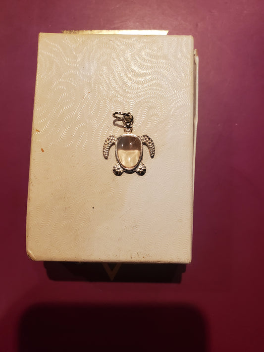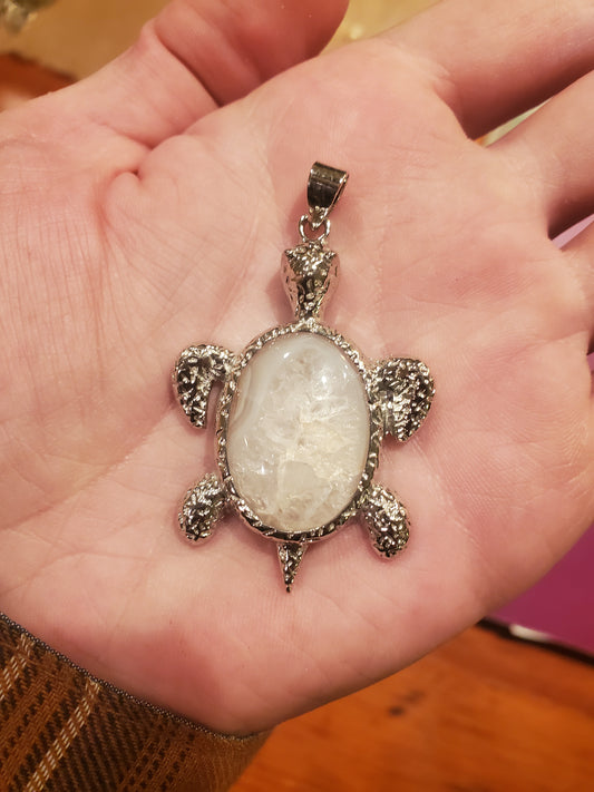 Quartz and Agate Turtle Pendant - 30x22mm Cab, Alloy Setting