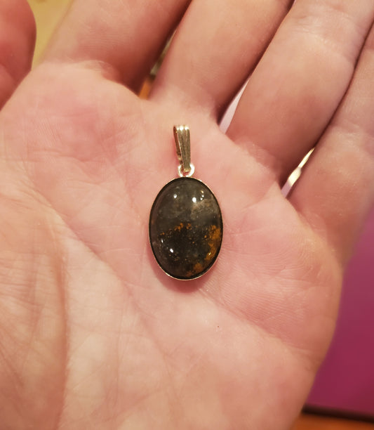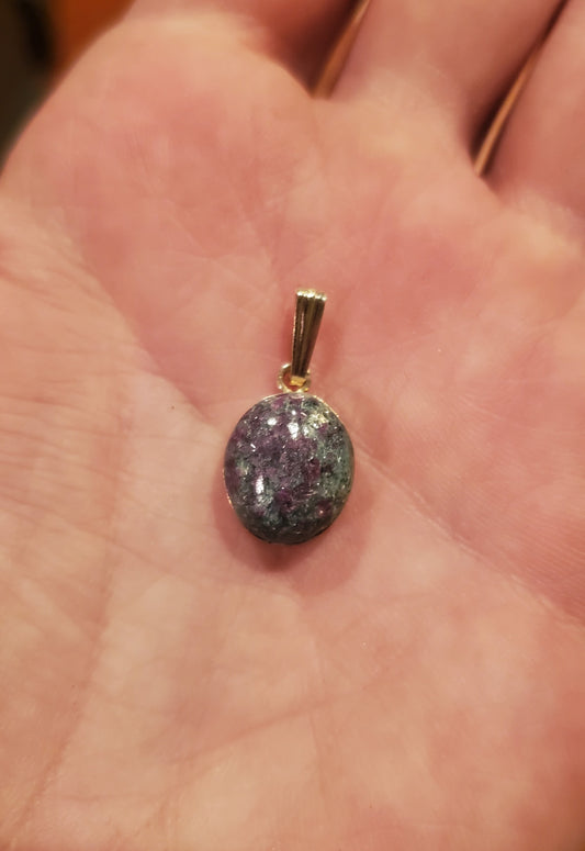Ruby and Sapphire in Kyanite Pendant - Silver Setting, 12x10mm Oval Cab