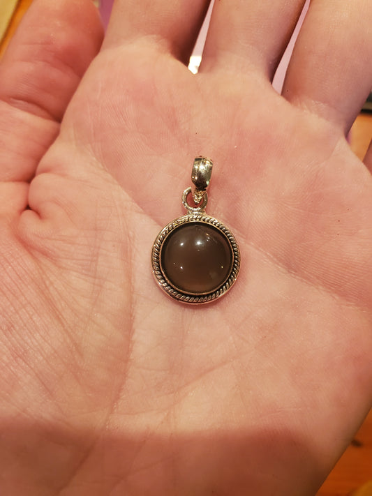 Rainbow Obsidian Necklace Pendant, 12mm Round Cab, Silver Setting