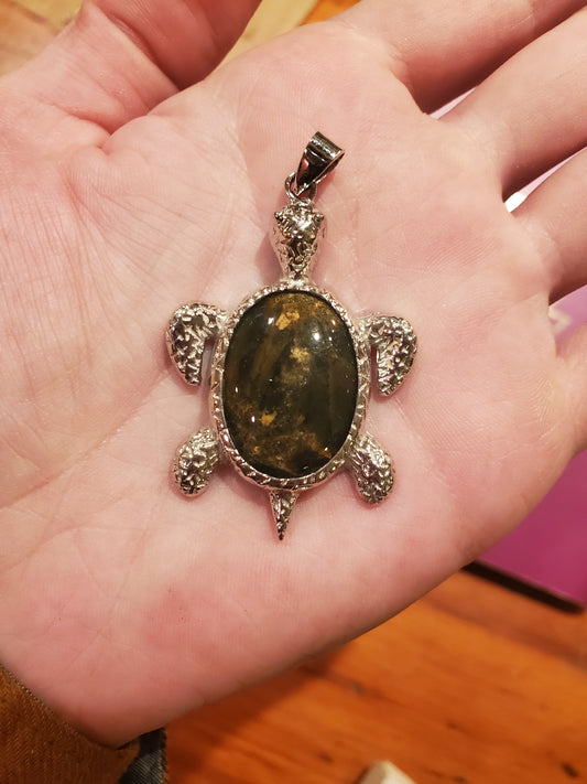 Oregon Shiller Sunstone Turtle Pendant, Silver-Plated Necklace