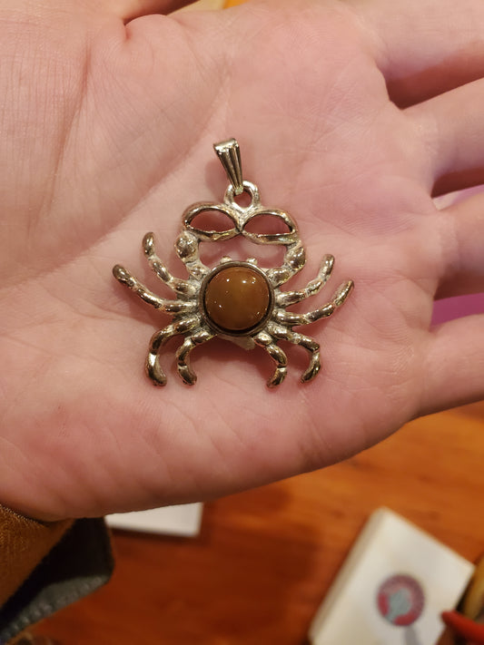 Montana City Jasper Crab Pendant - 10mm Cab, Alloy Setting