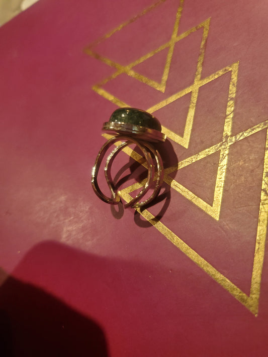Moss Agate Adjustable Ring - 18x13mm Cab, Alloy Ring