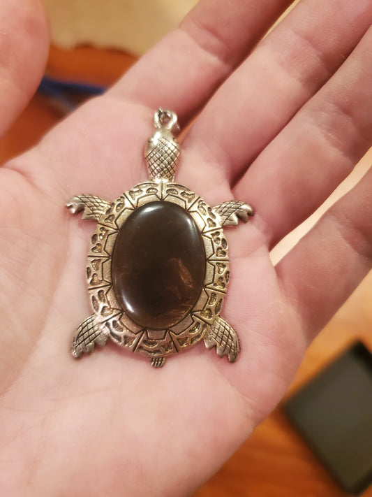 Obsidian Turtle Pendant - 25x18mm Cab, Alloy Pendant