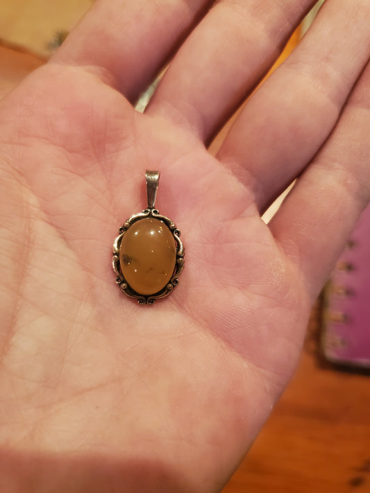 Nevada Moss Agate Necklace Pendant, 18x13mm Cab, Silver Setting