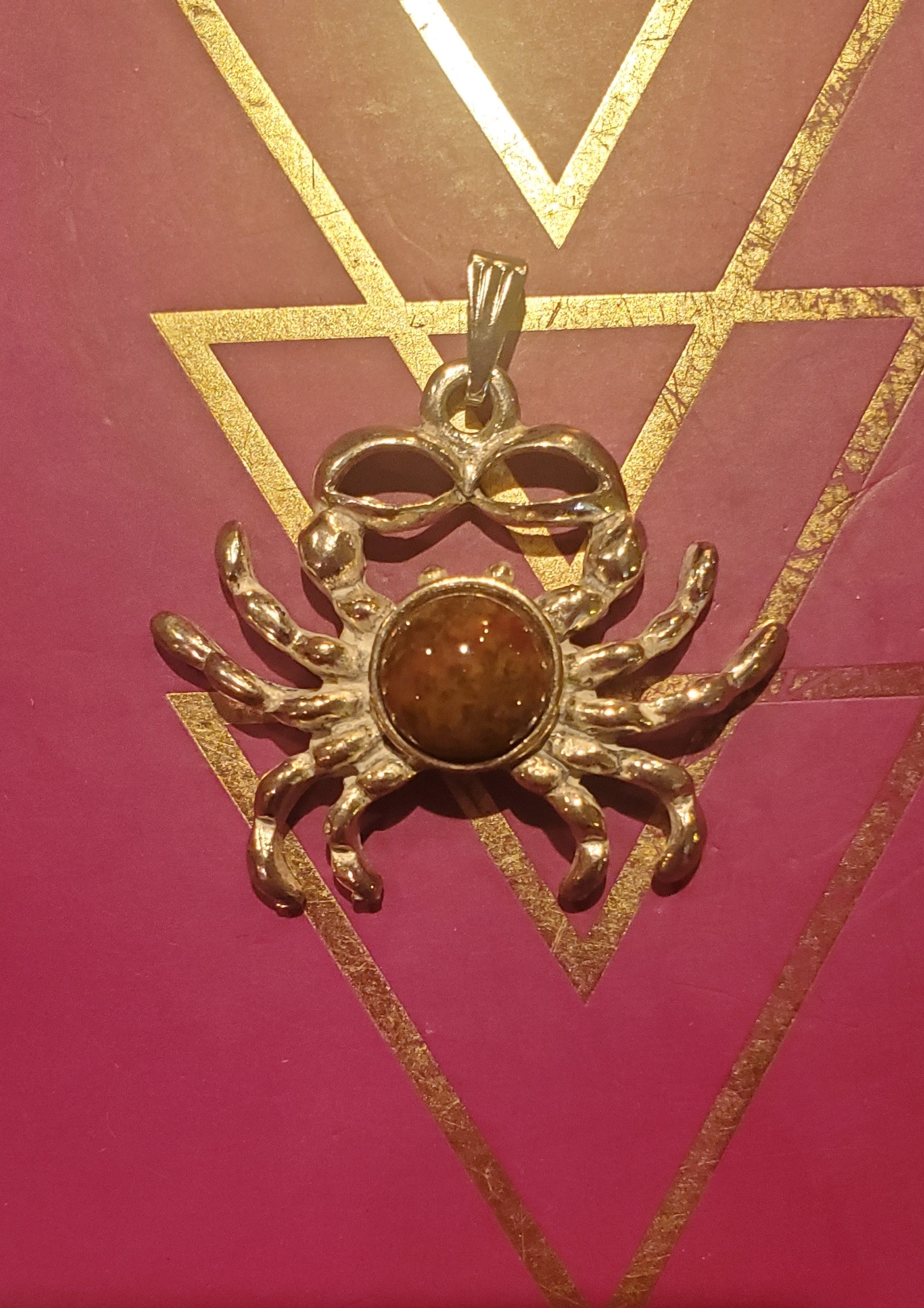 Agate Hill Crayon Jasper Crab Pendant - 10mm Cab, Alloy Setting