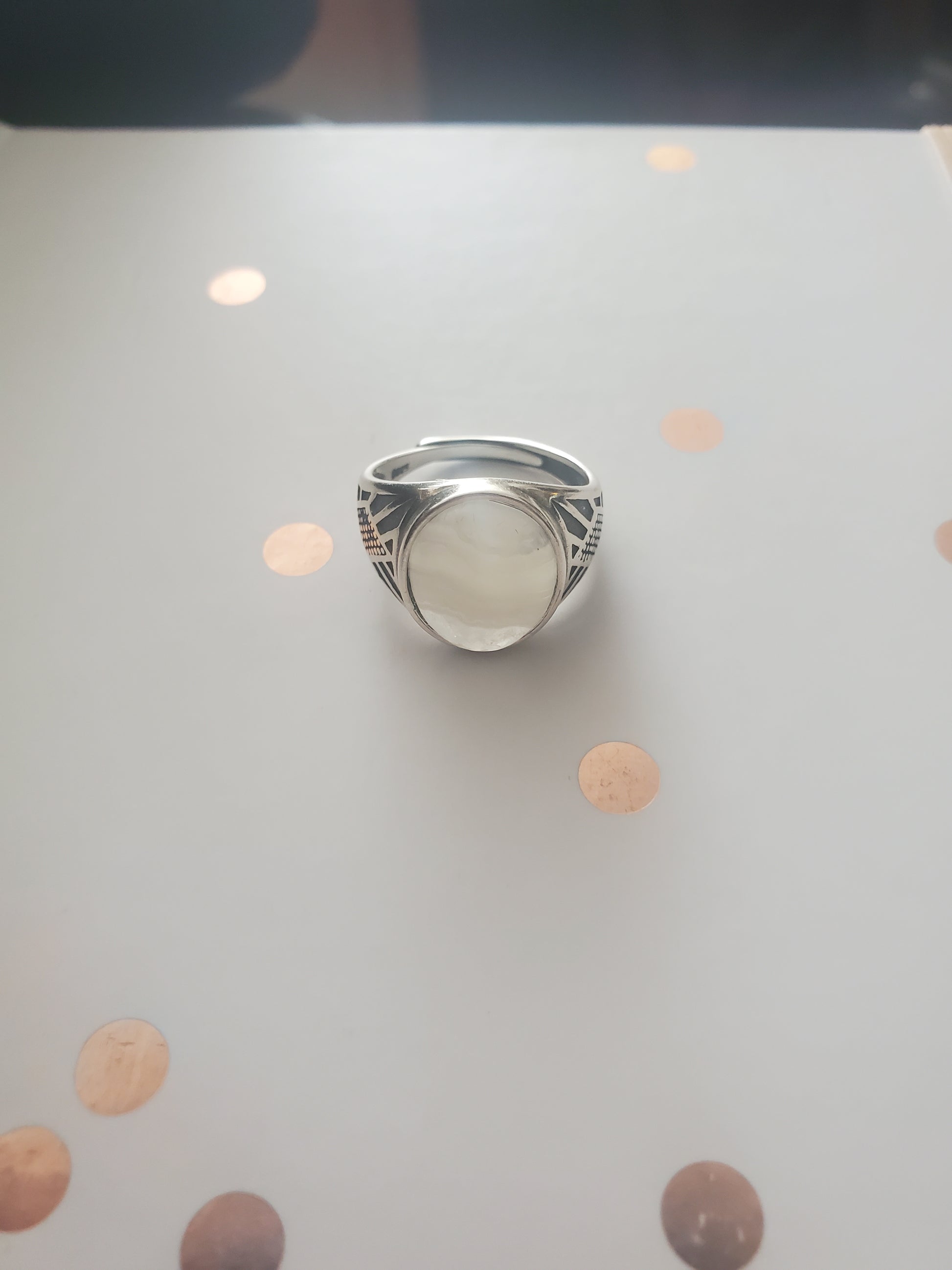 Banded Agate and Quartz Adjustable Ring - Silver, 12mm Oval Cab