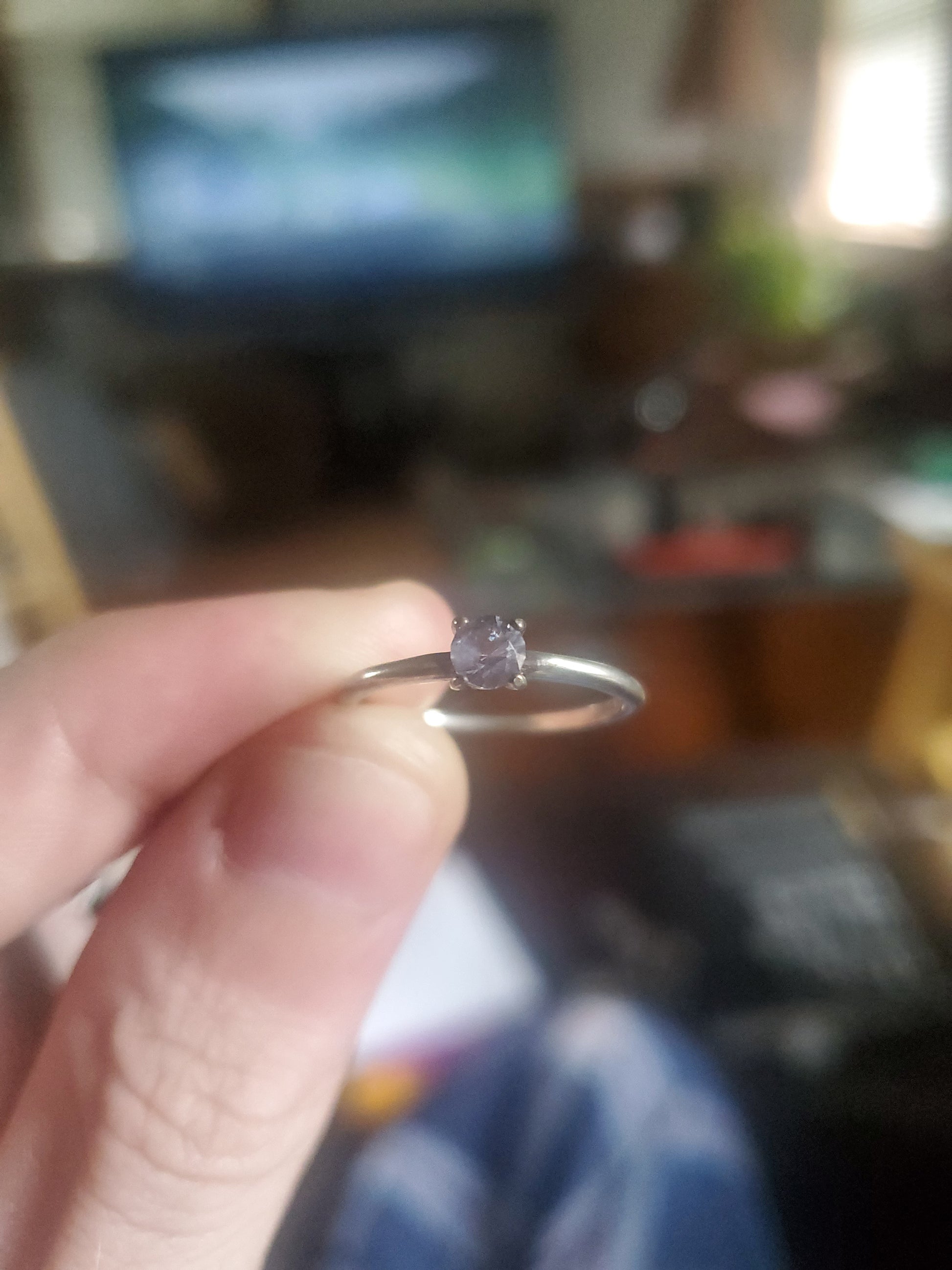 This pretty Blue Jewel Montana Sapphire is a bi-color purple that looks champagne color in certain lights. A gorgeous piece, though it was hard to take a good picture of, and I know we are still working on getting a better picture taking setup.
