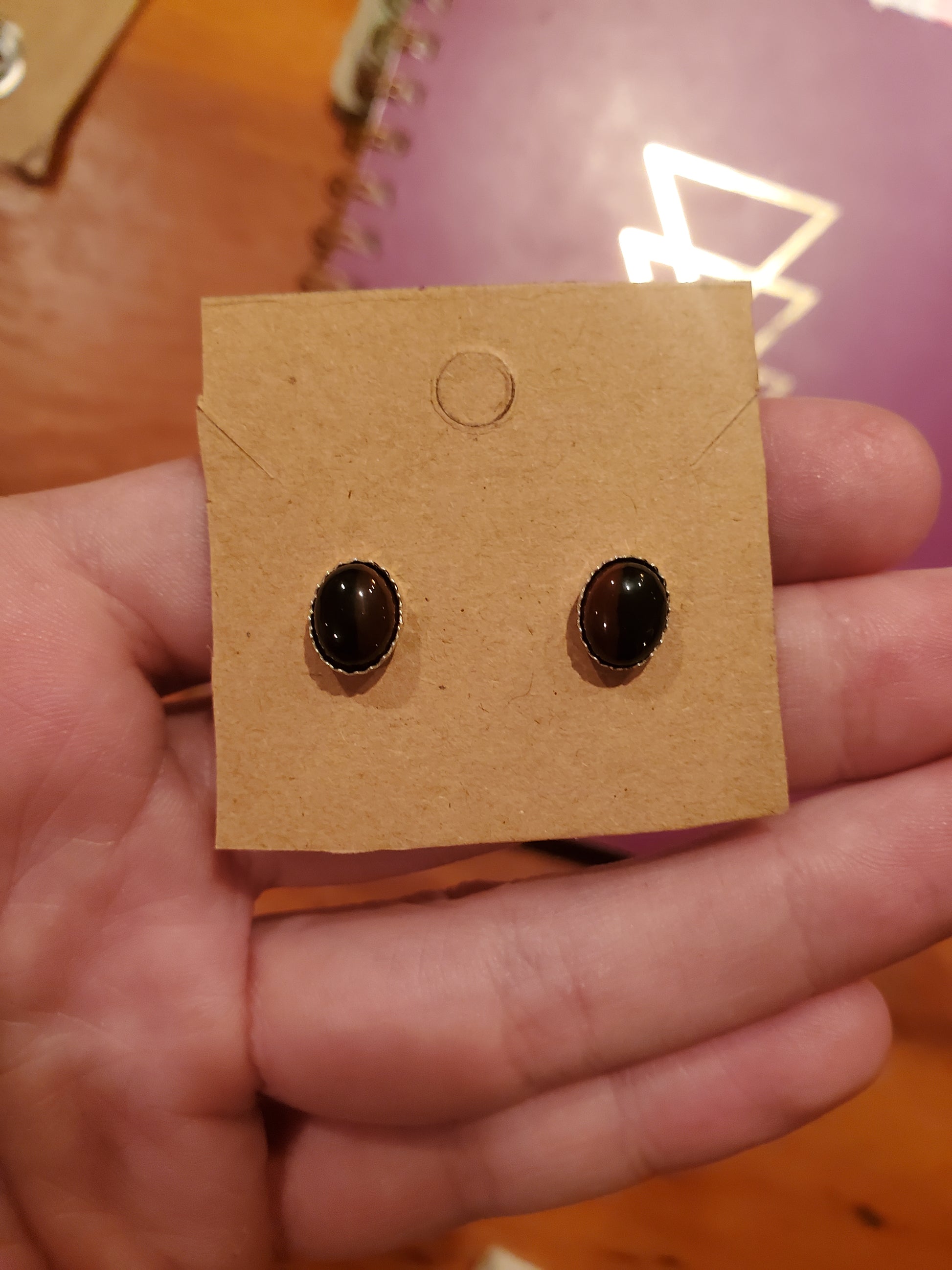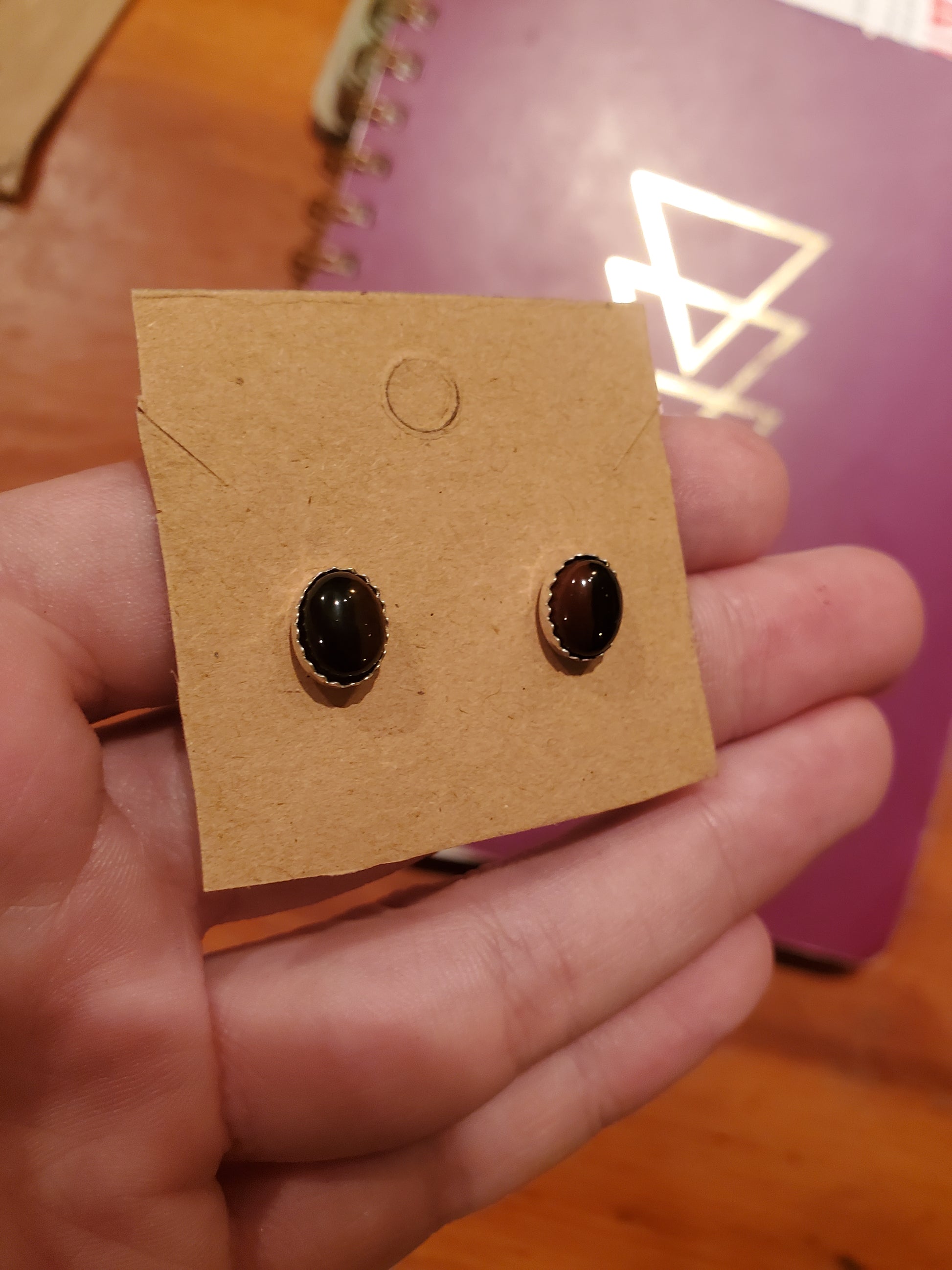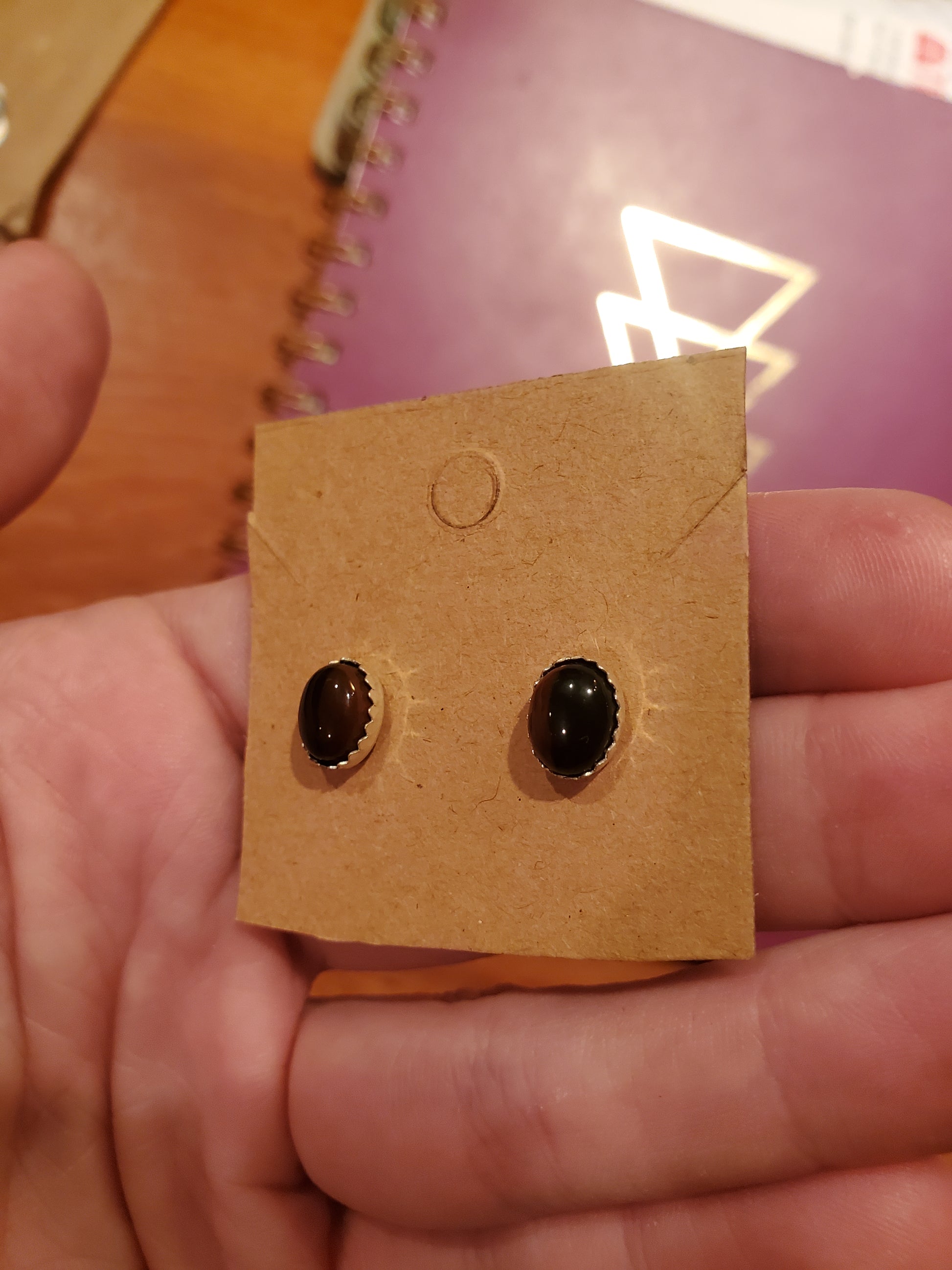 These pieces of Mahogany Obsidian from Davis Creek California have a really nice split of color between the orange and black agate! These are great for the fall season but will match quite a bit of outfits in general. Nice earrings!