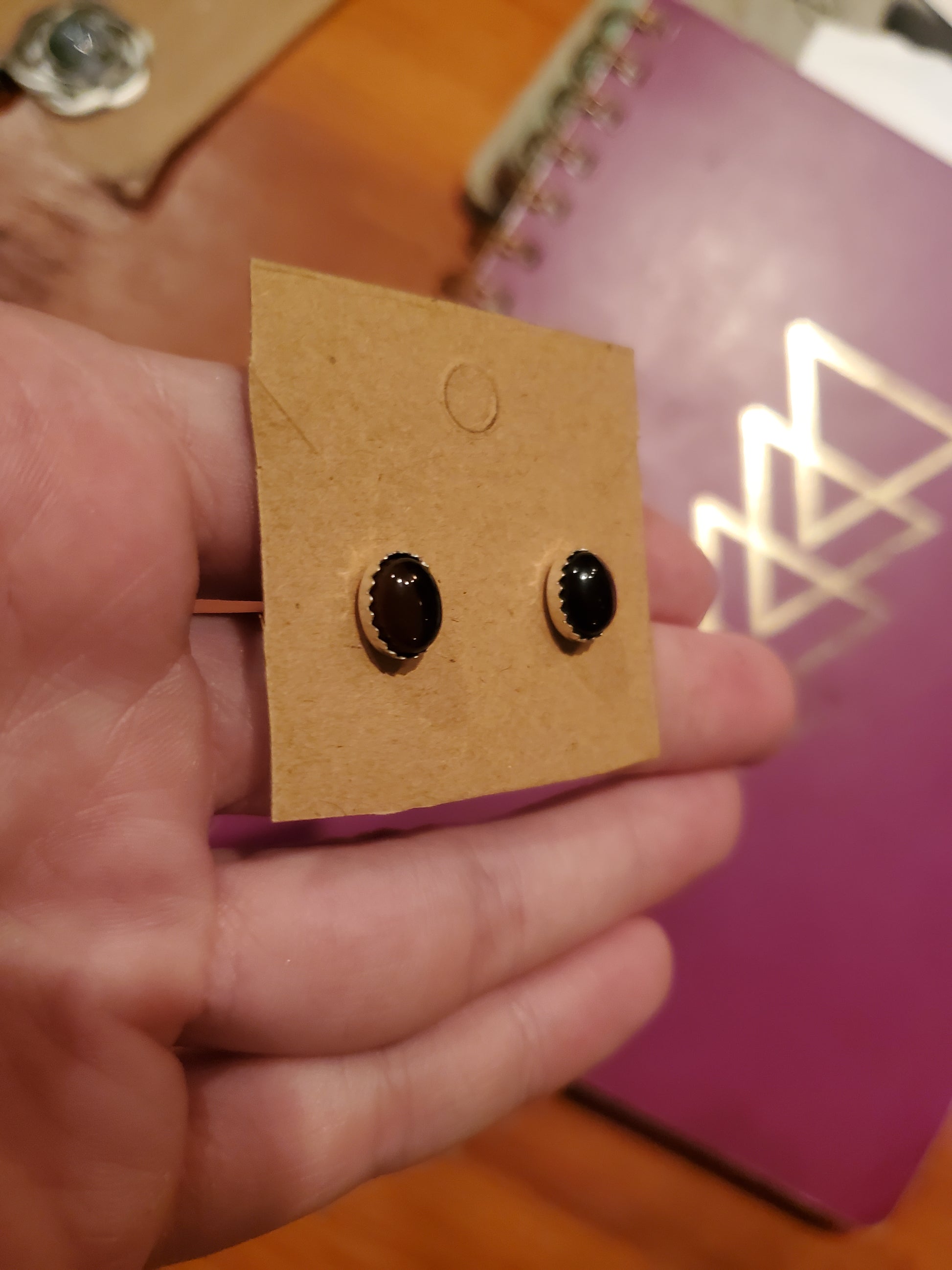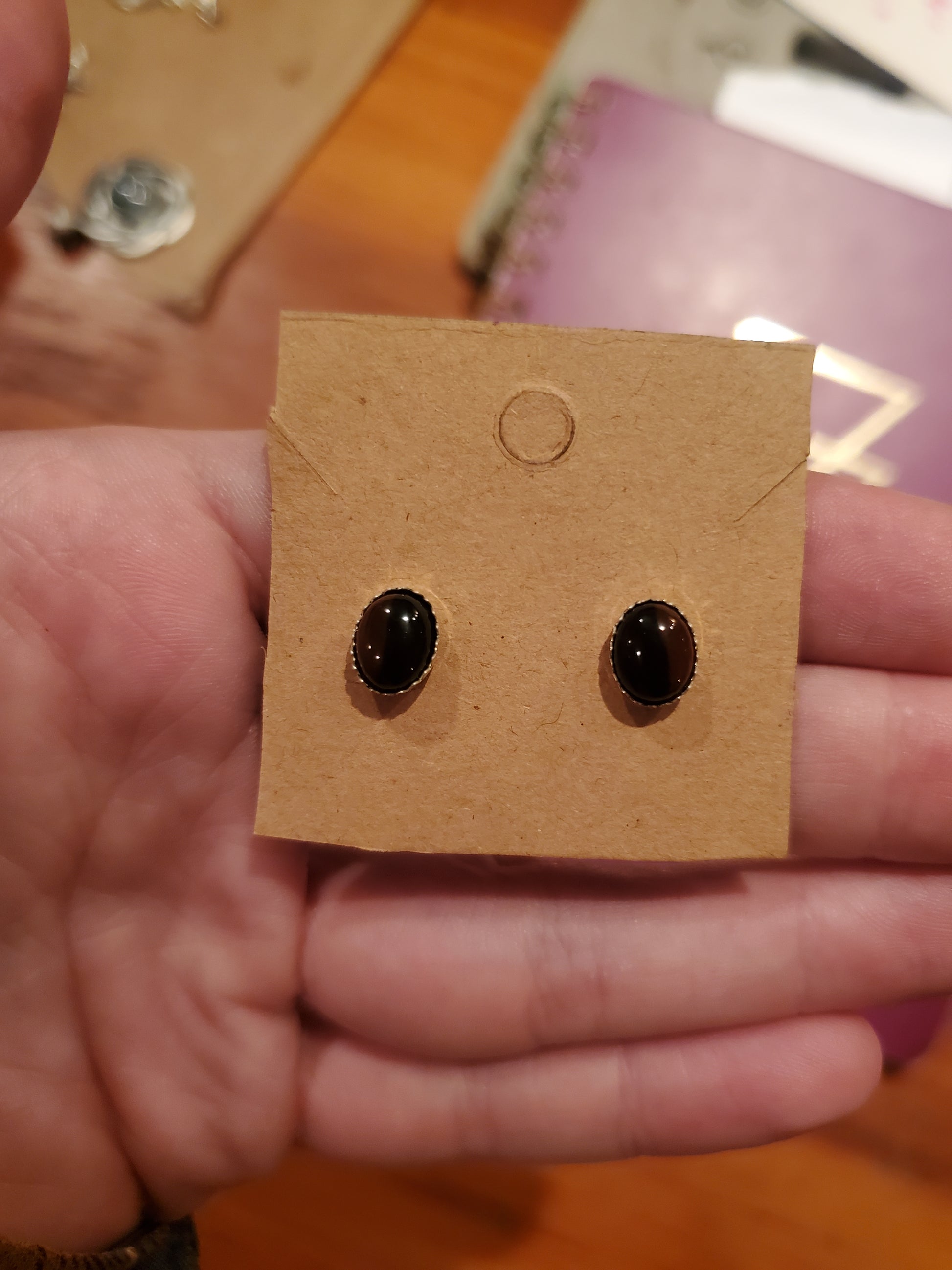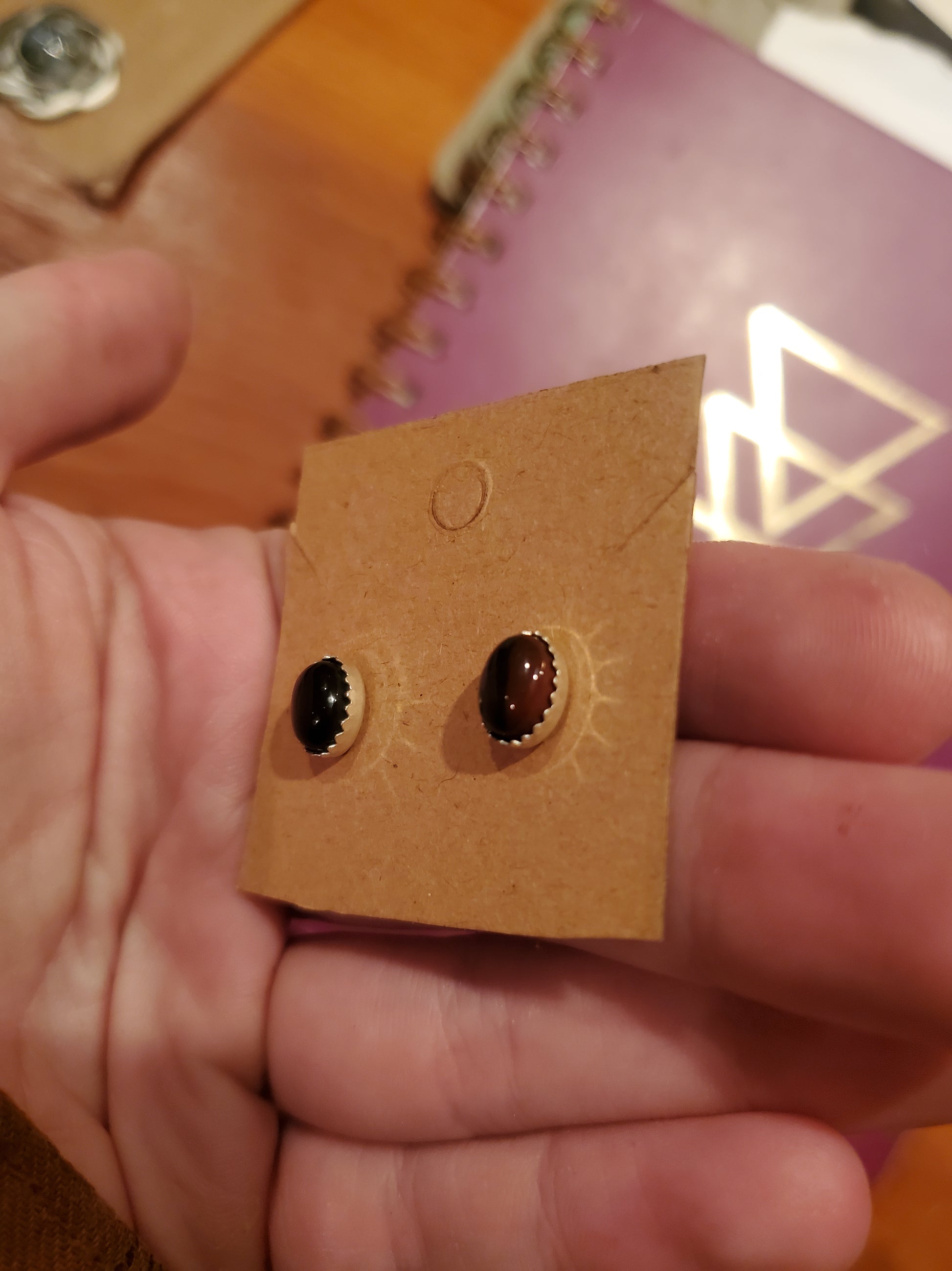 These pieces of Mahogany Obsidian from Davis Creek California have a really nice split of color between the orange and black agate! These are great for the fall season but will match quite a bit of outfits in general. Nice earrings!