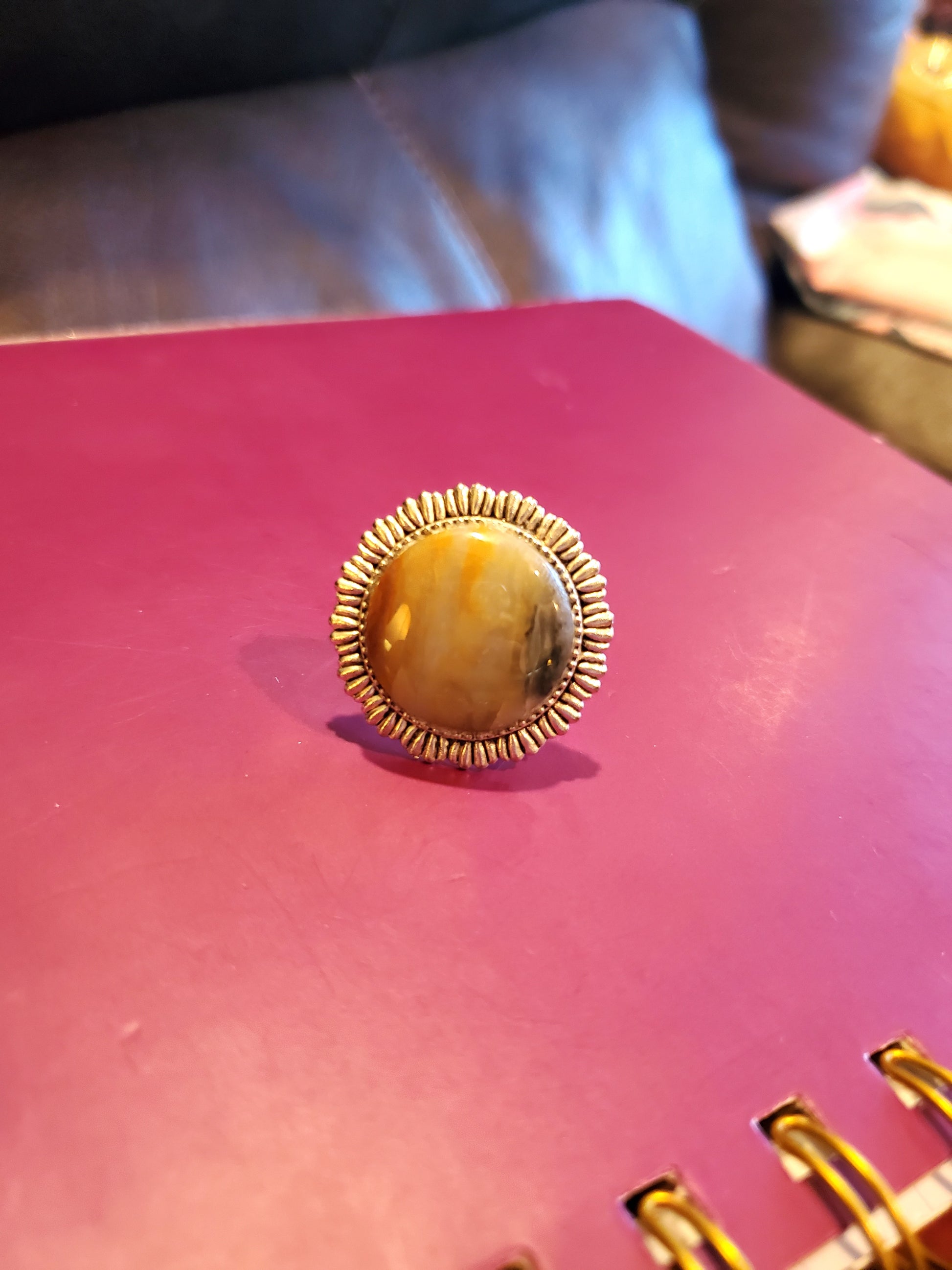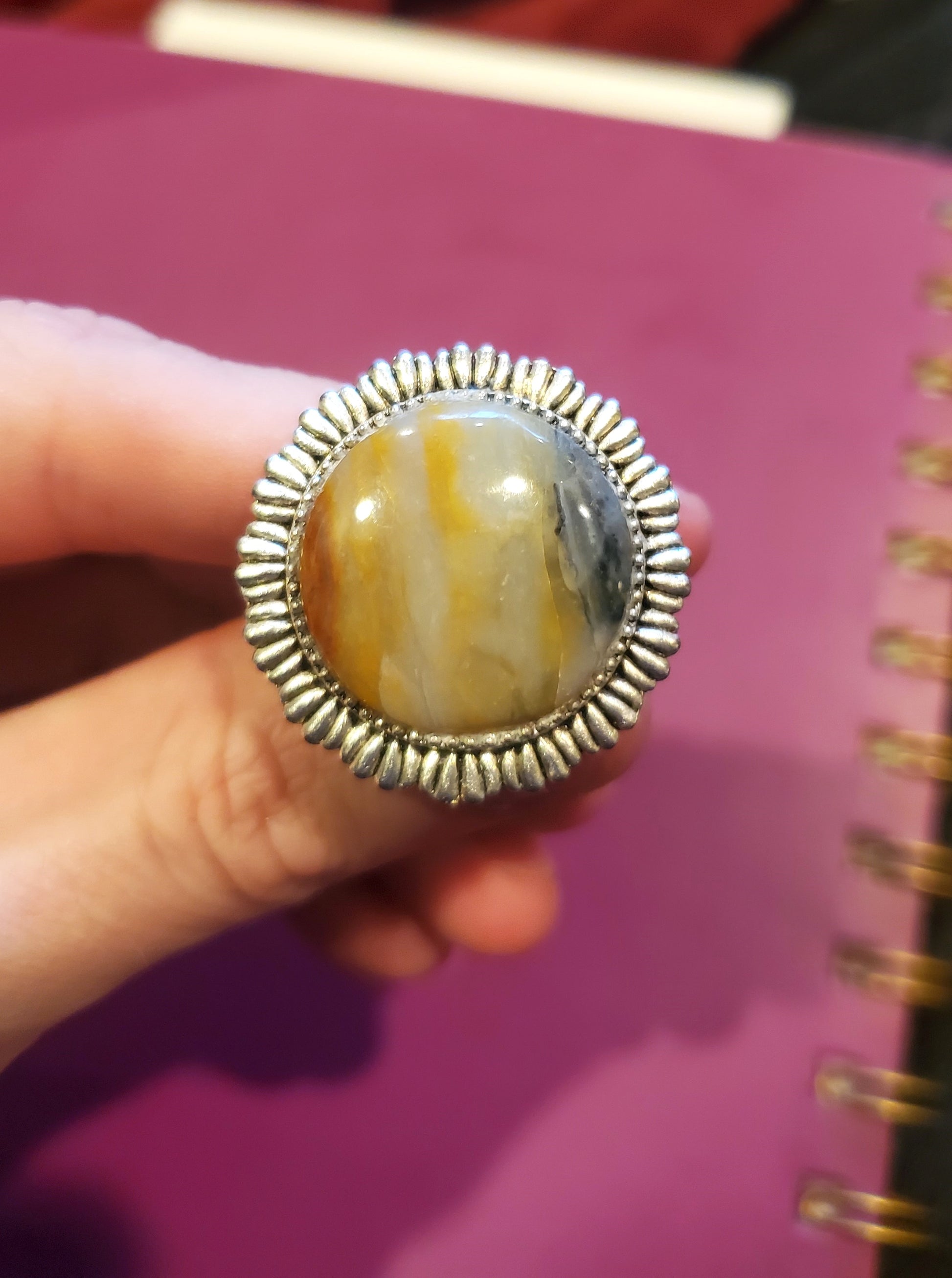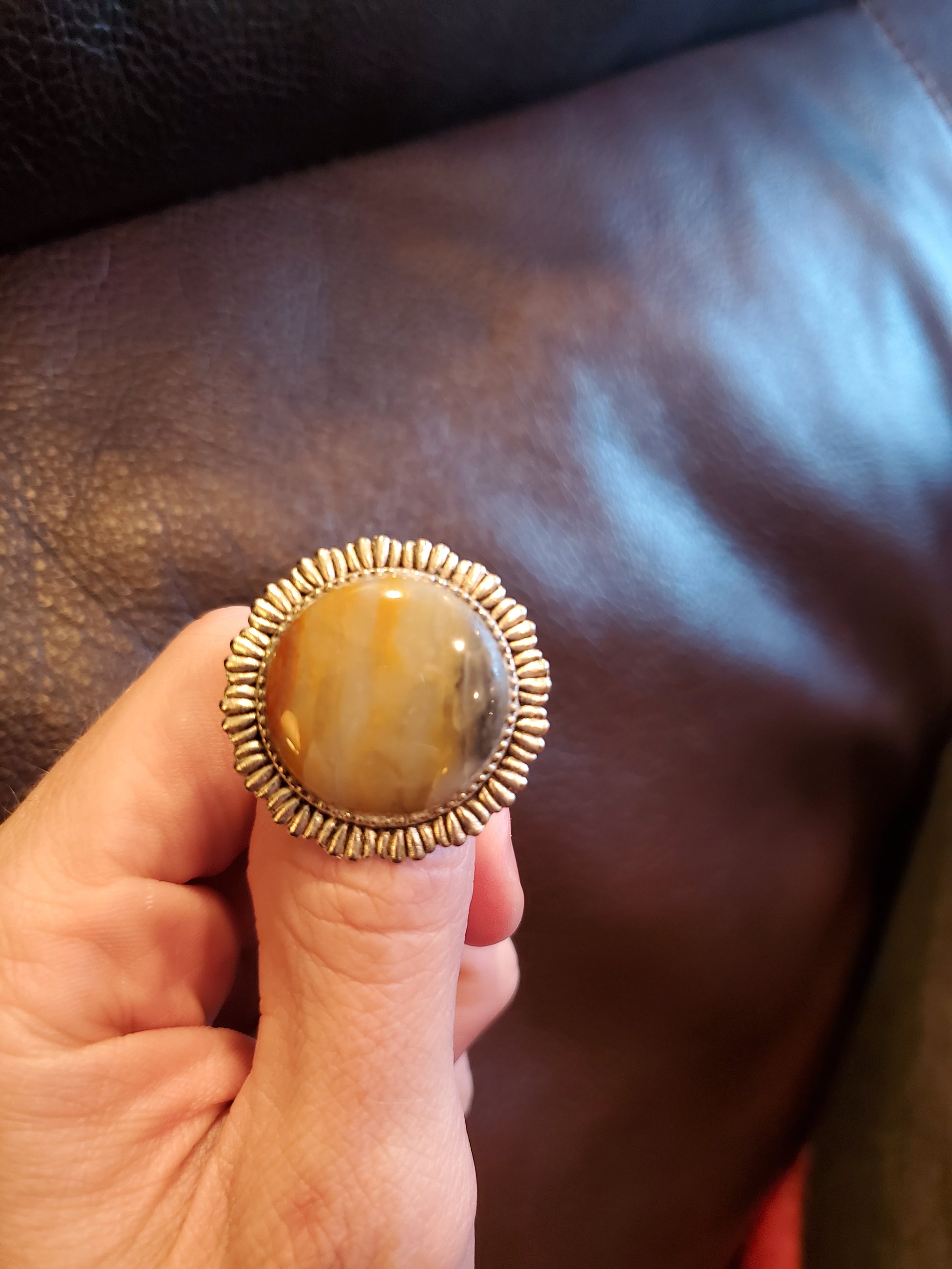 Blackfoot Jasper Adjustable Ring - 20mm Round Cab, Radial Setting