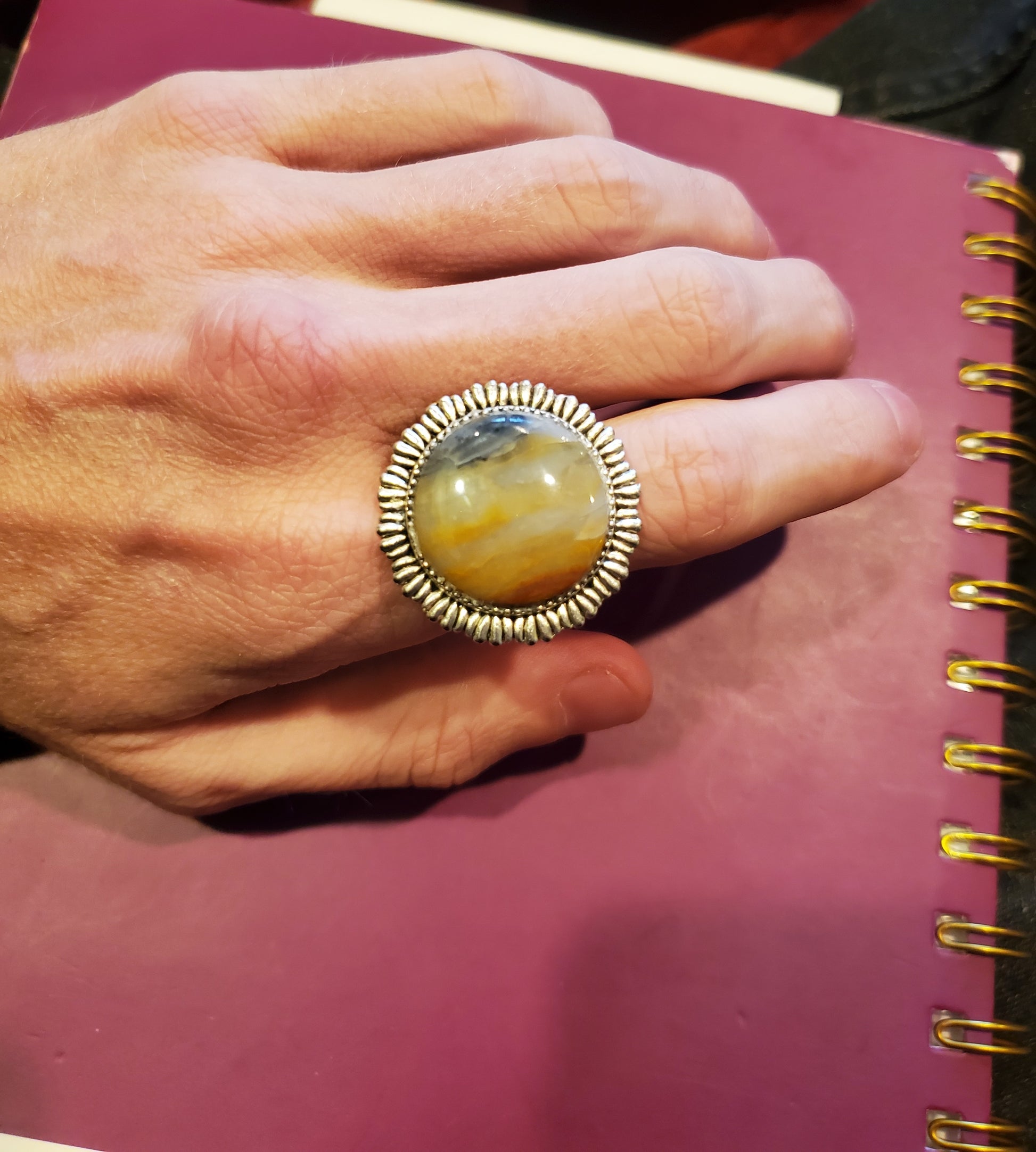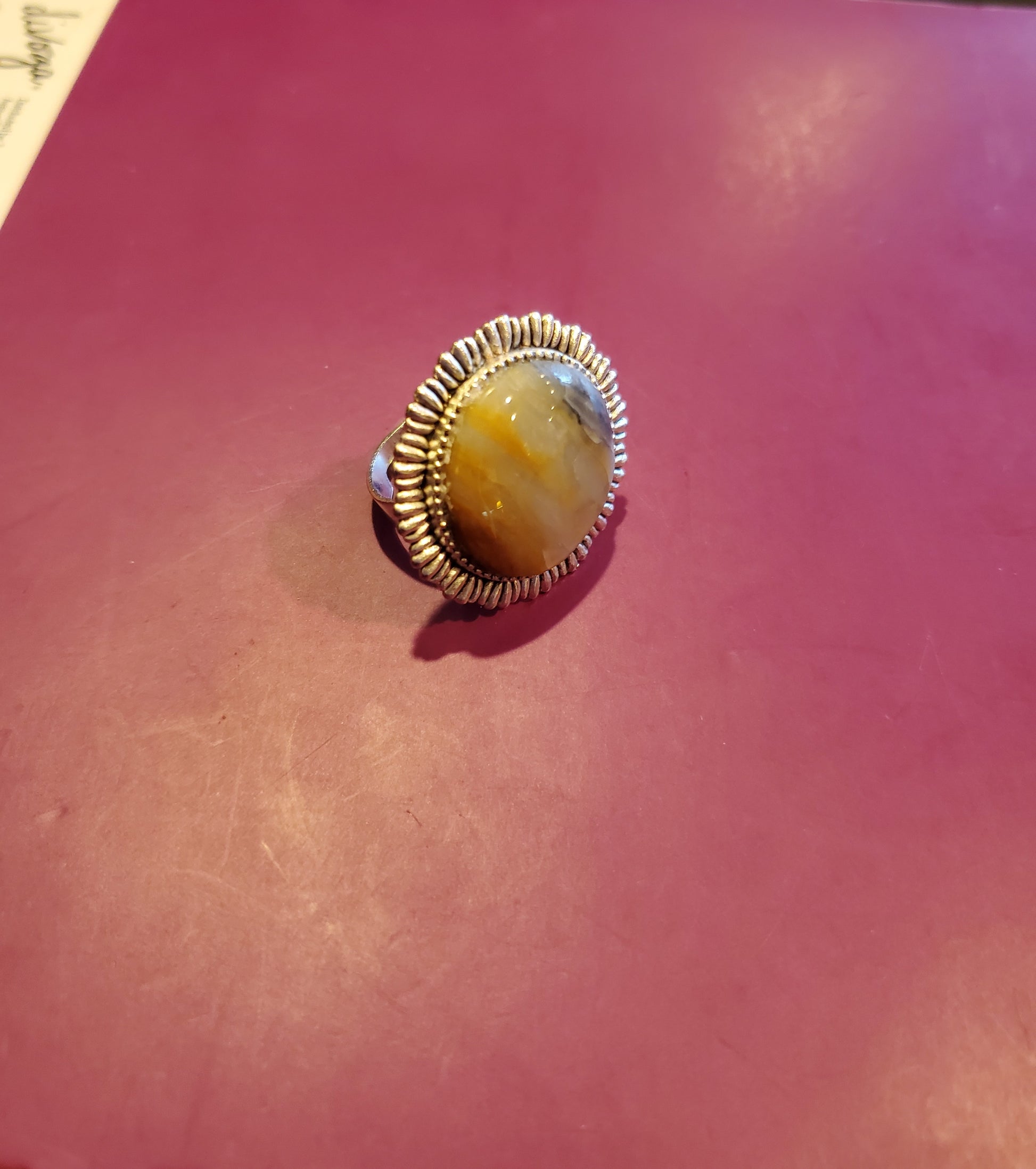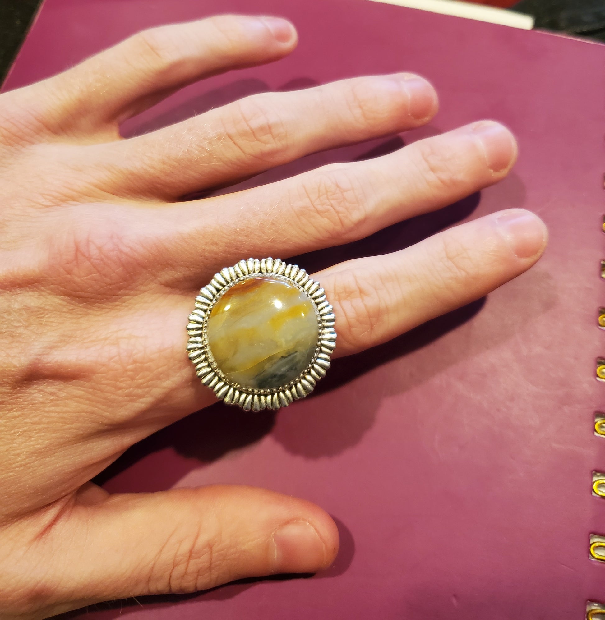 Blackfoot Jasper Adjustable Ring - 20mm Round Cab, Radial Setting