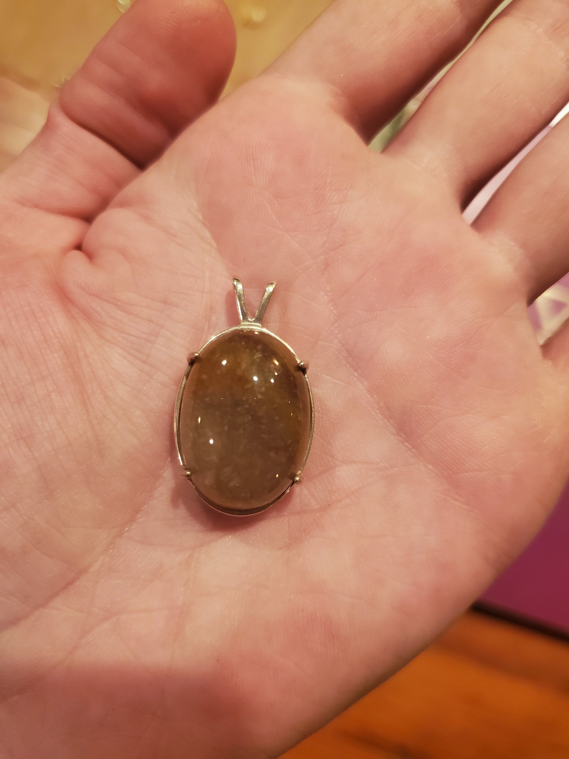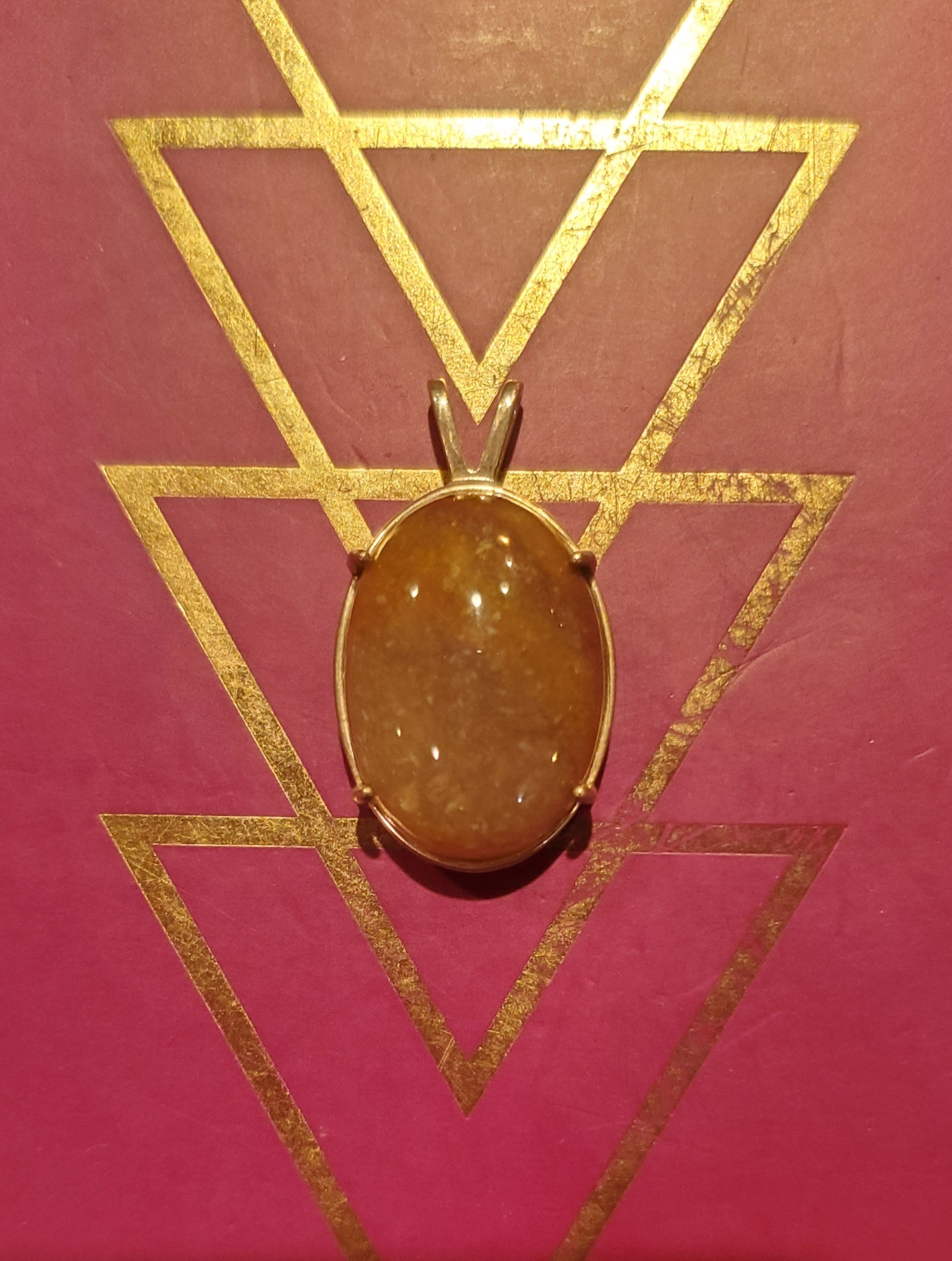 This pendant features a rare piece of agate from the Blackfoot River in Northern Montana, from a spot that mostly produces jasper with bits of agate in it. This is a piece of agate with some jasper inclusions and colorization in the top half, so one will see a subtly clear stone white dots on it, and then colorization bands of yellow and red going into the top corner. a unique piece for sure.
