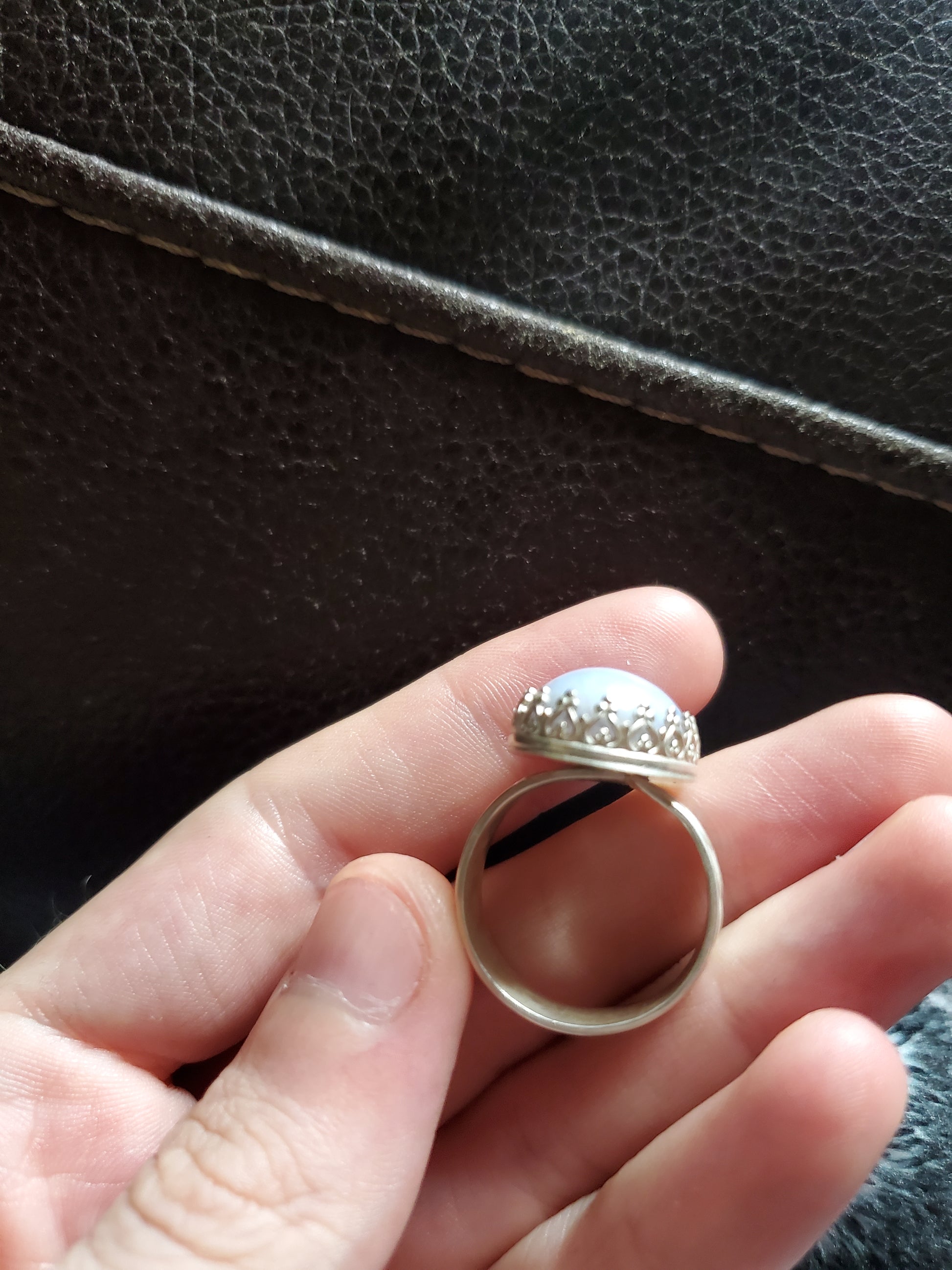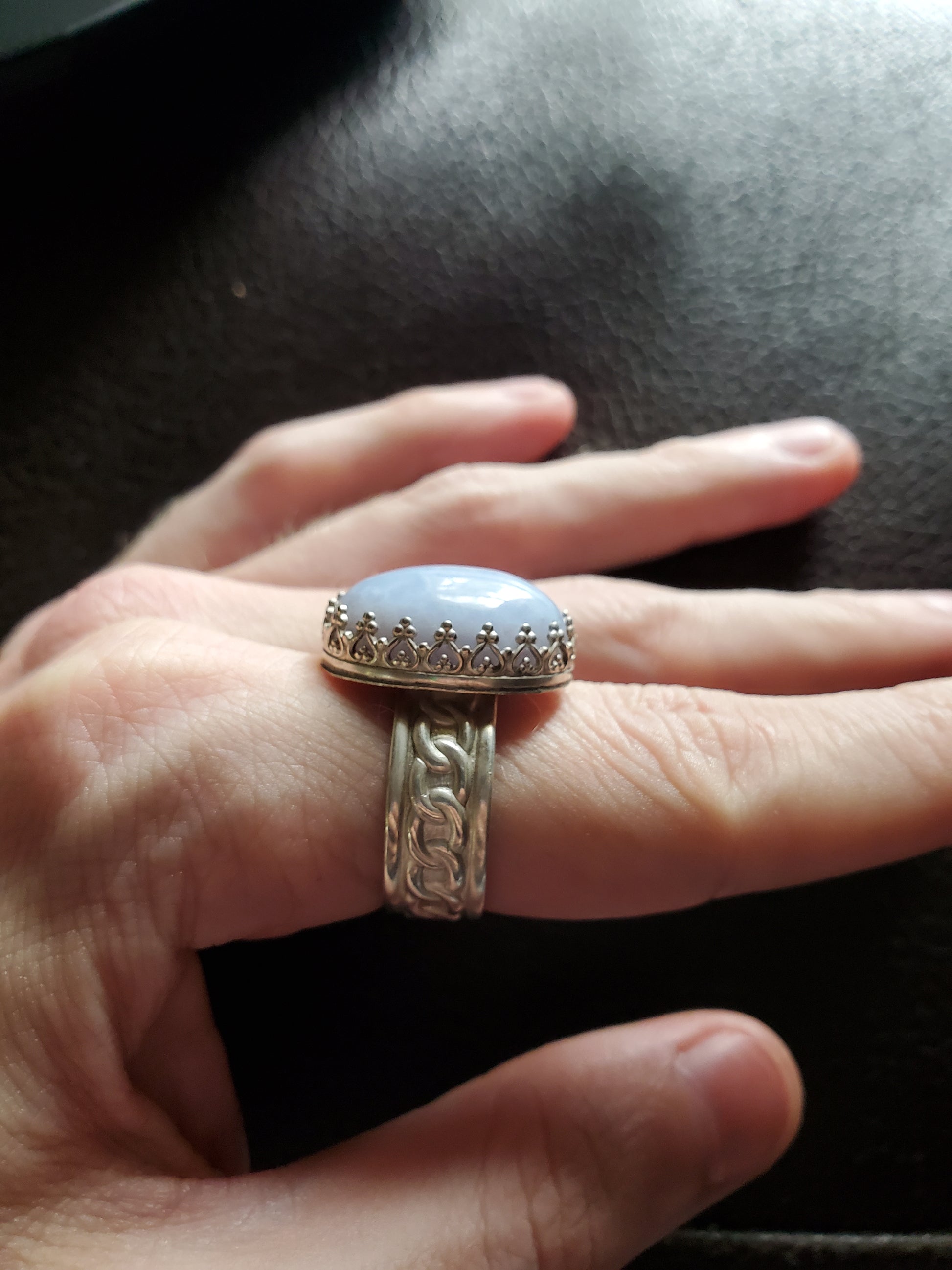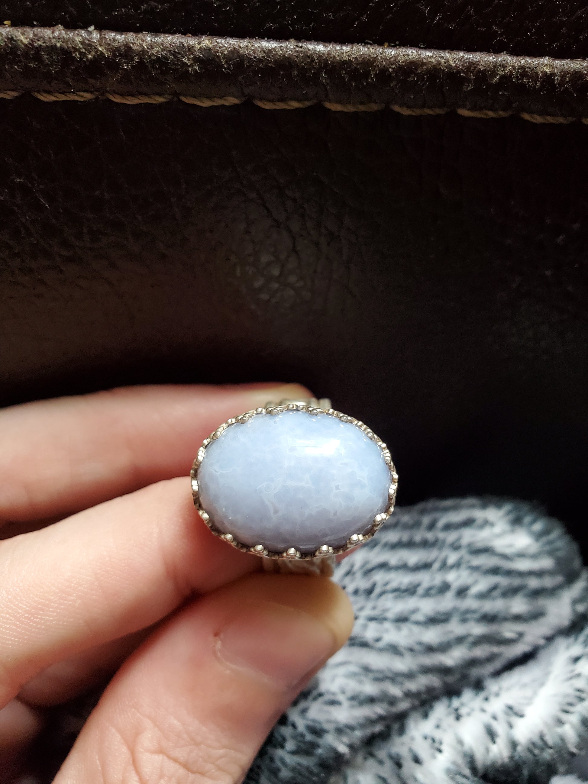 Blue Lace Agate Ring, Size 9 - Sterling Silver Smithed Setting