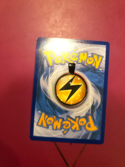 This keychain or pendant features an Electric Energy! The circular graphics really pop in the accessories. I really love the little extra details that some of these pendants have. Prices may vary by rarity of card used to make the pendant. If you wish to inquire about different color backing, or want more than one of a certain style, please message us and show you the style you like in the options we have.