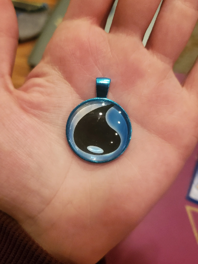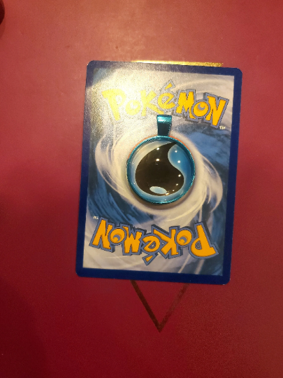This keychain or pendant features a Water Energy! The circular graphics really pop in the accessories. I really love the little extra details that some of these pendants have. Prices may vary by rarity of card used to make the pendant. If you wish to inquire about different color backing, or want more than one of a certain style, please message us and show you the style you like in the options we have.