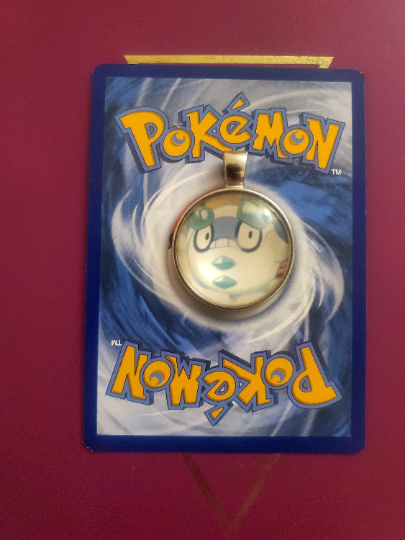 This keychain or pendant features a Galar Darumaka! The circular graphics really pop in the accessories. I really love the little extra details that some of these pendants have. Prices may vary by rarity of card used to make the pendant. If you wish to inquire about different color backing, or want more than one of a certain style, please message us and show you the style you like in the options we have.