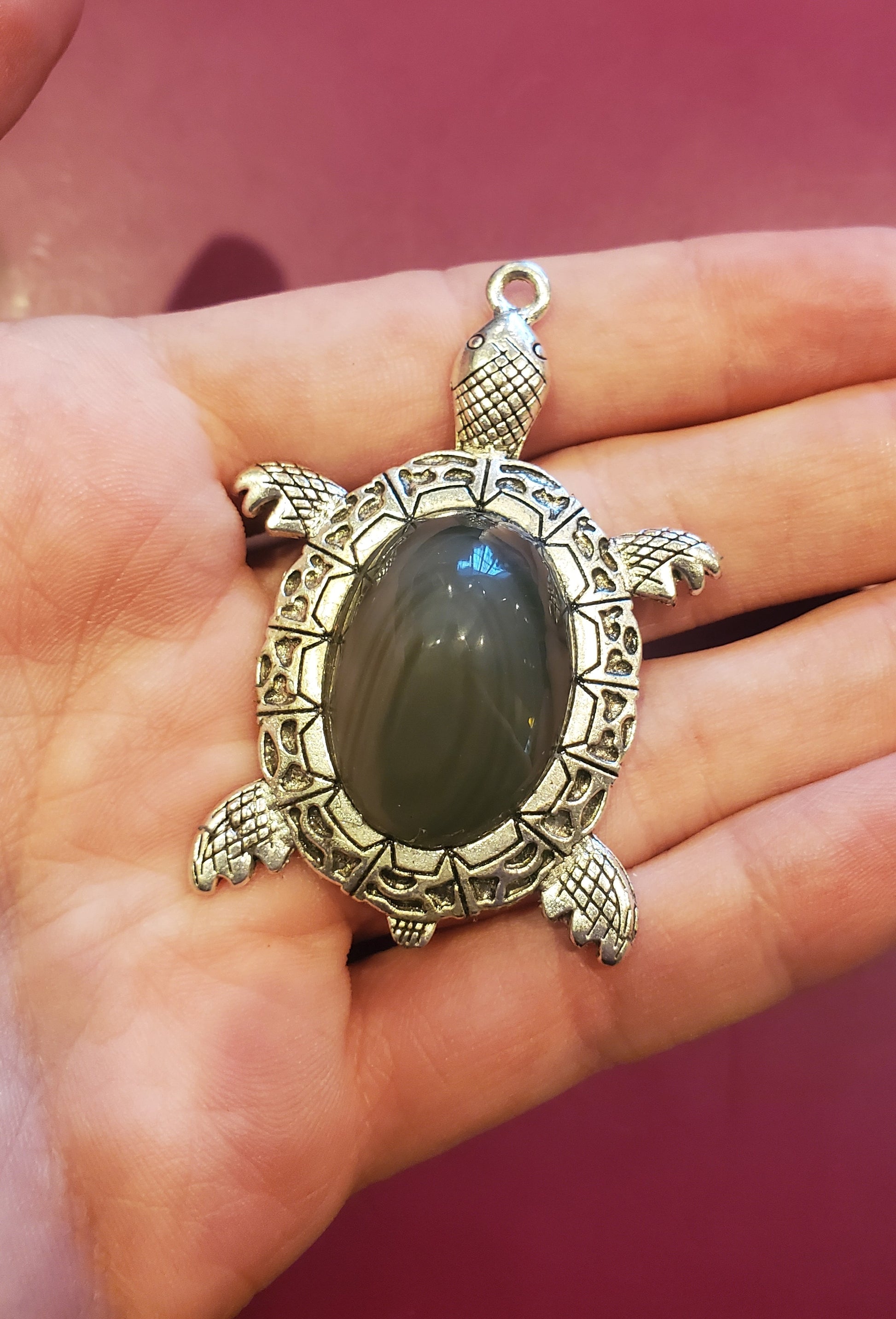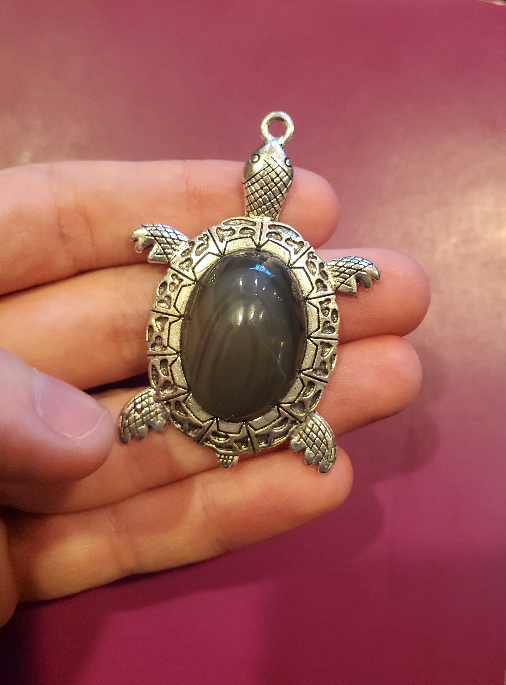 The animal pendants are super cute and great for anyone who loves them!! This turtle pendant has a nice piece of obsidian in it with some banded color layers. Helps give the 'shell' some detail :) From Davis Creek, California