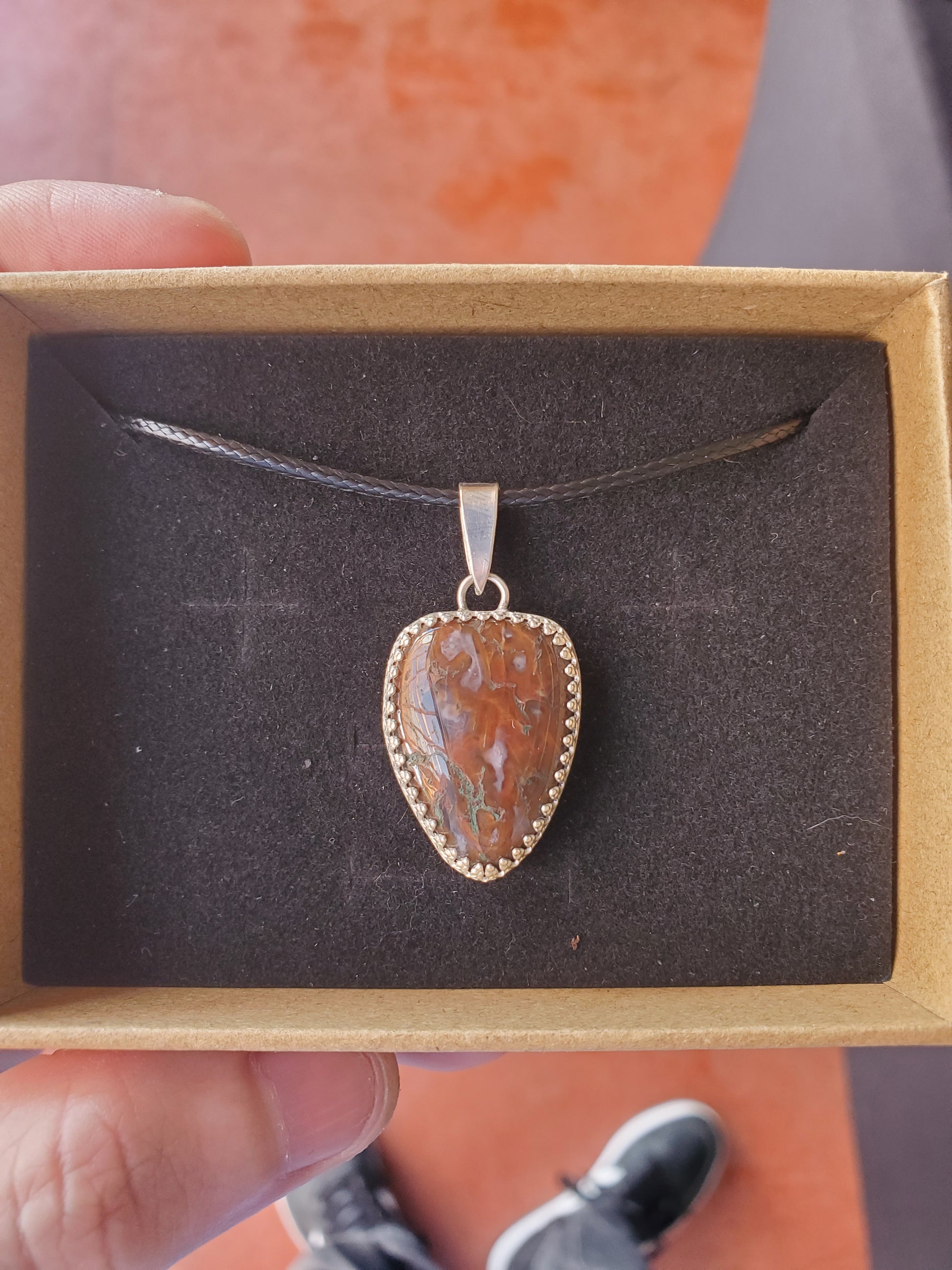 Double Sided Moss Agate Pendant - Sterling Silver Smithed