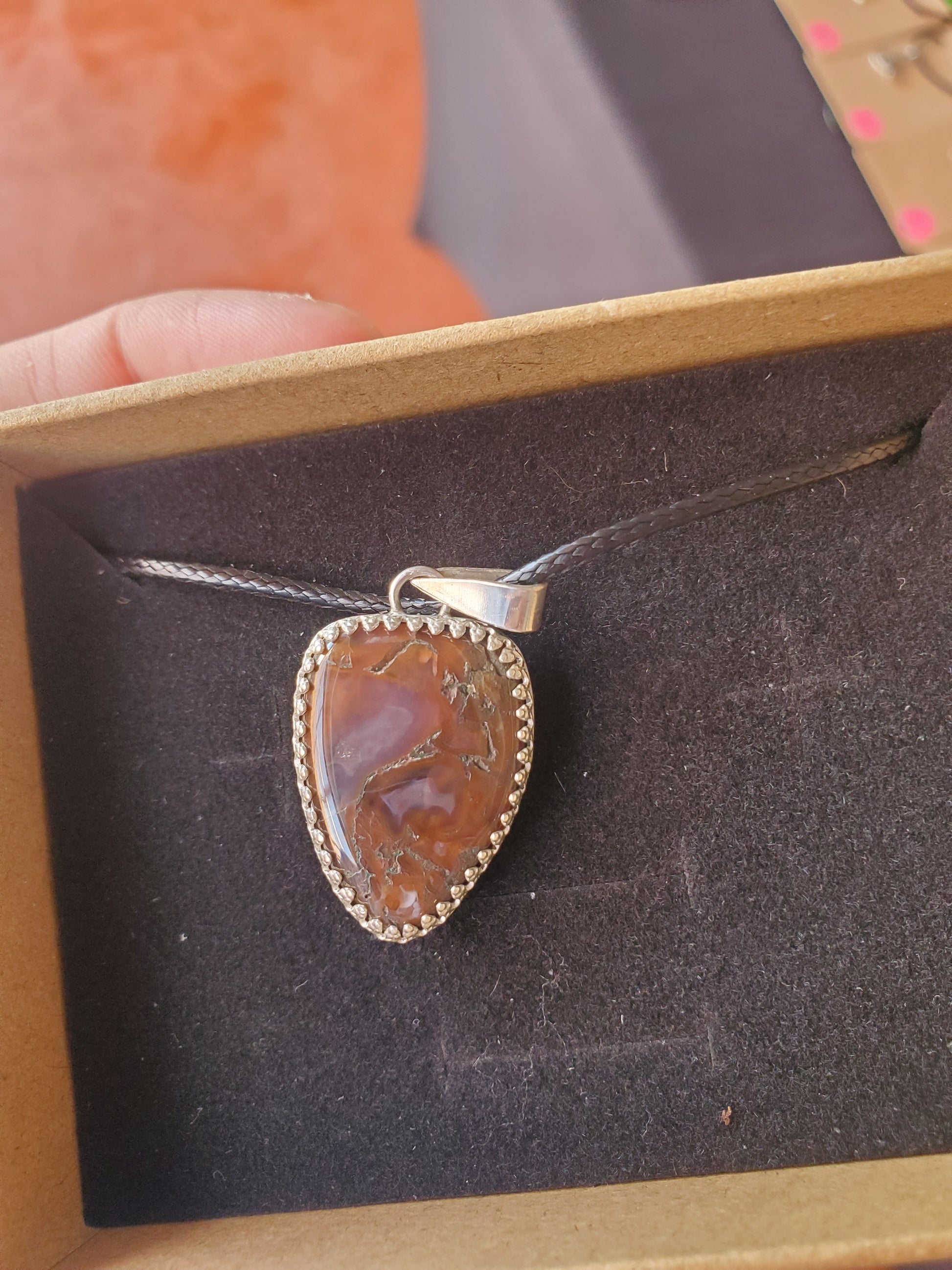 This unique piece of brown moss agate is peppered with clear agate pockets and loads of detail. A rare find for the location we got it from in Idaho.