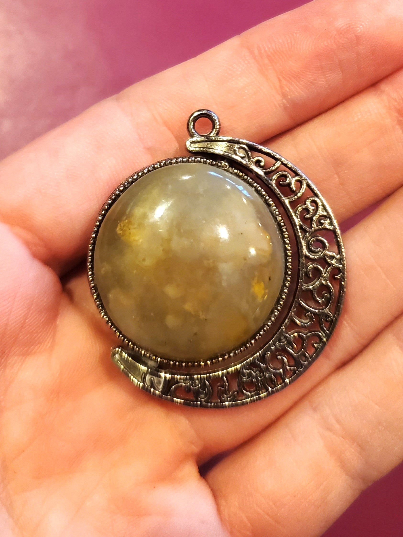 Double Sided Moon Pendant - Agate and Jasper - 25mm Round Cabs