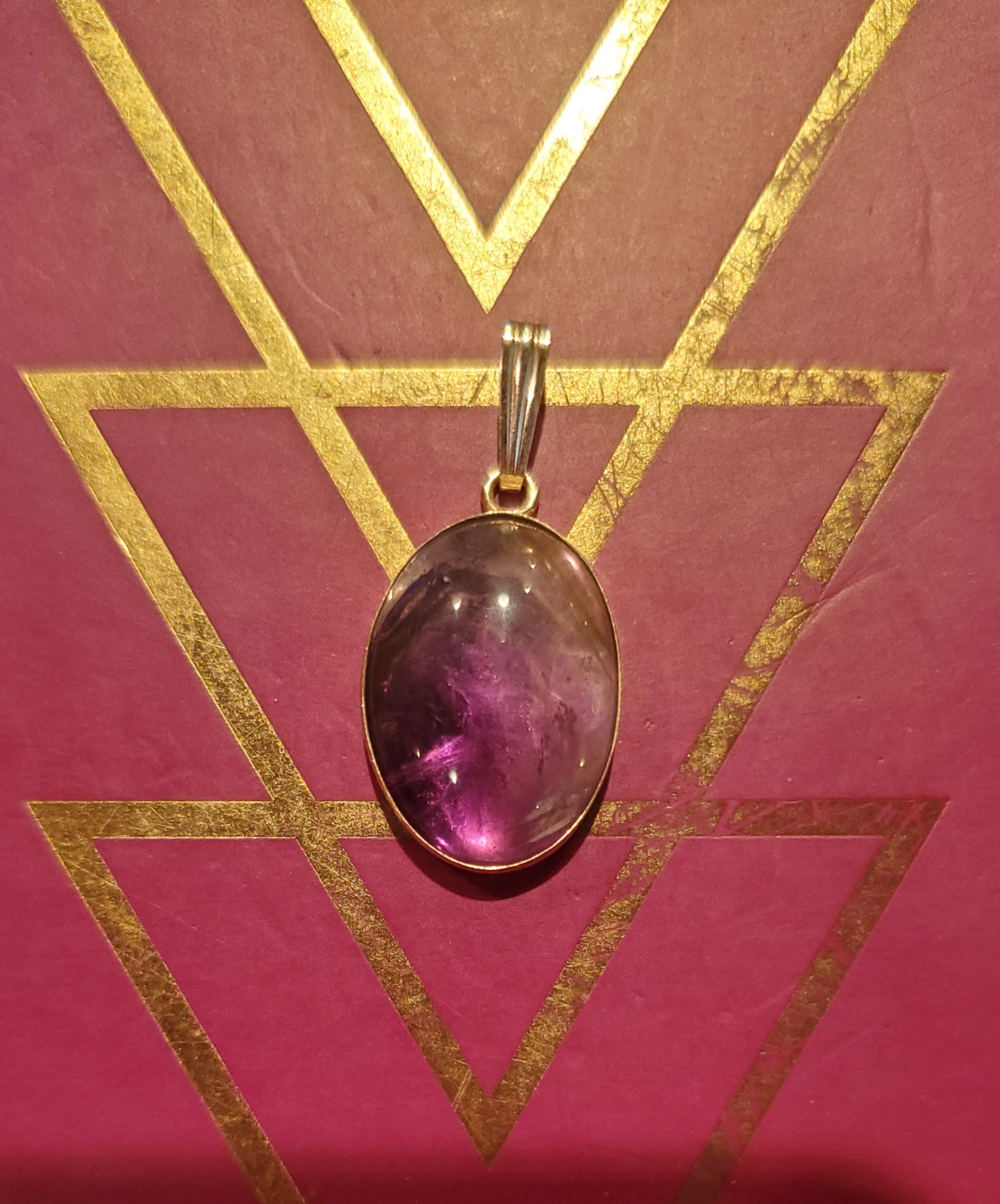 This piece features a gemmy piece of amethyst with some subtle filaments that create an inner design if you look really closely. I love how deep this purple is, and the top corner has a bit of citrine (orange quartz).