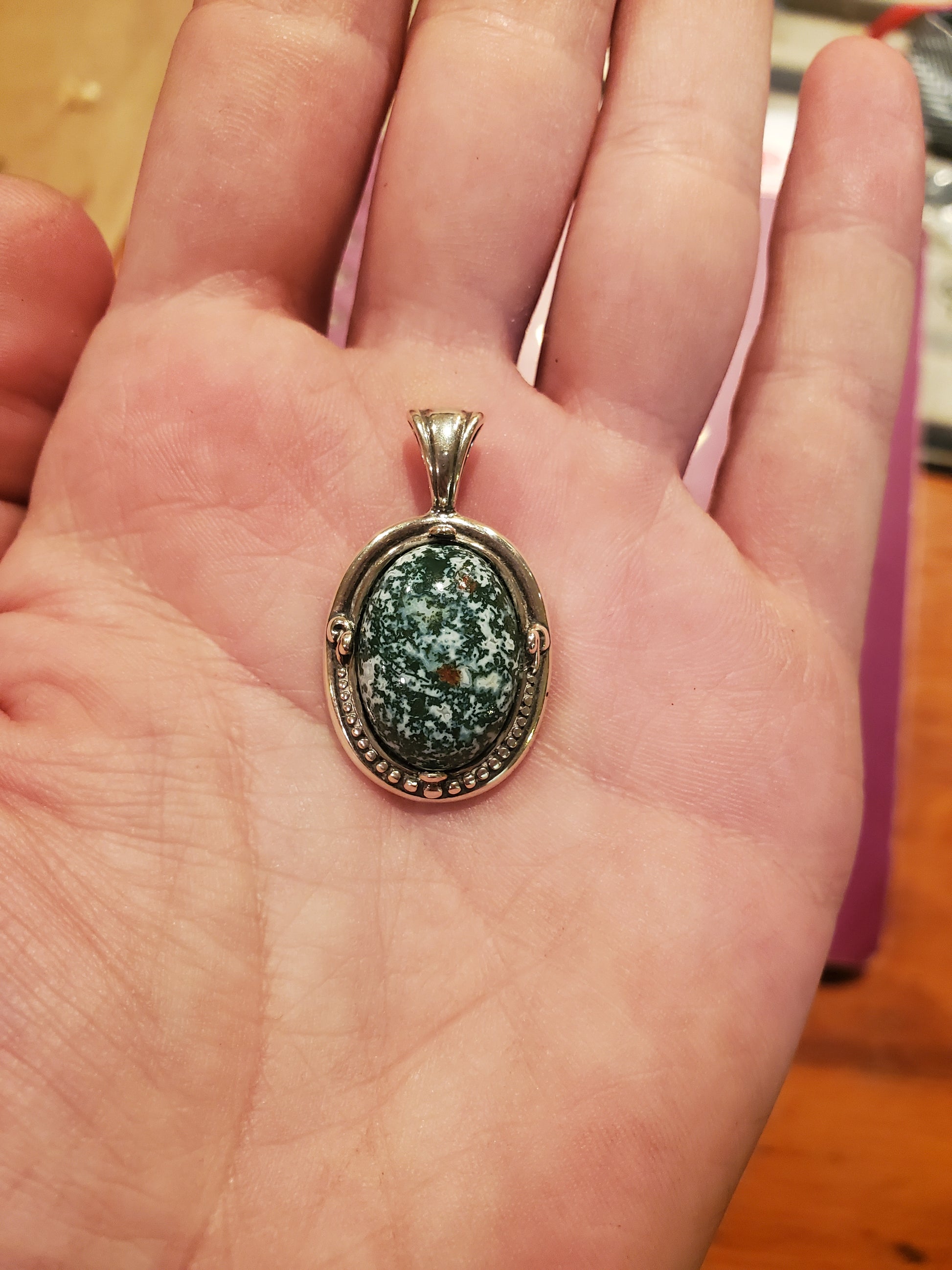 Idaho Moss Agate Necklace Pendant, 18x13mm Cab, Silver Setting