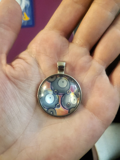 This keychain or pendant features a Magneton! The circular graphics really pop in the accessories. I really love the little extra details that some of these pendants have. Prices may vary by rarity of card used to make the pendant. If you wish to inquire about different color backing, or want more than one of a certain style, please message us and show you the style you like in the options we have.