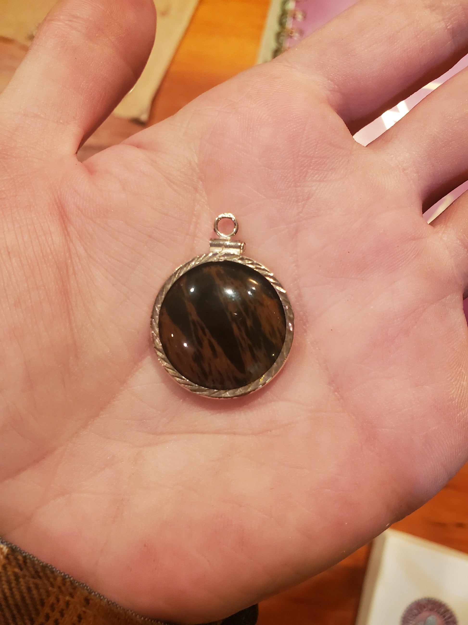Mahogany Obsidian Rotatable Pendant - 20mm Cab, Sterling Silver Plated Setting