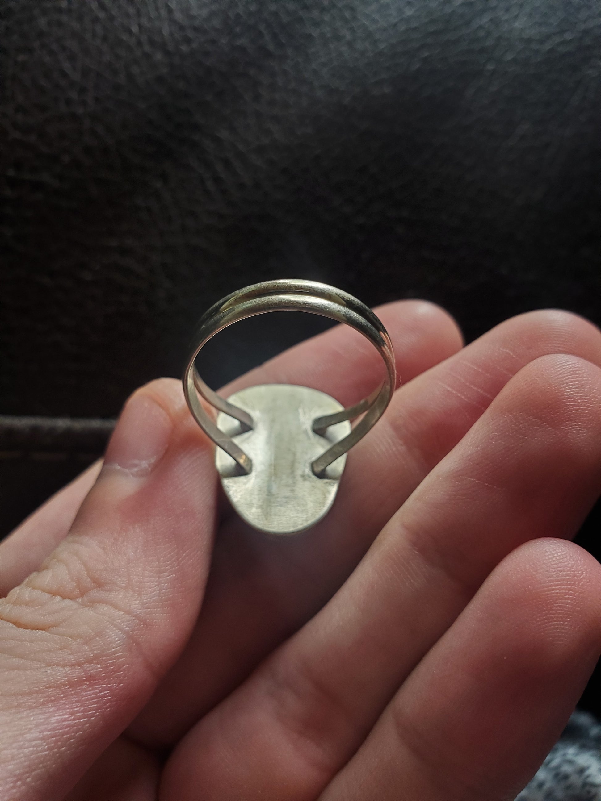 Malachite with inset Topaz Ring, Size 10 - Sterling Silver Smithed Setting