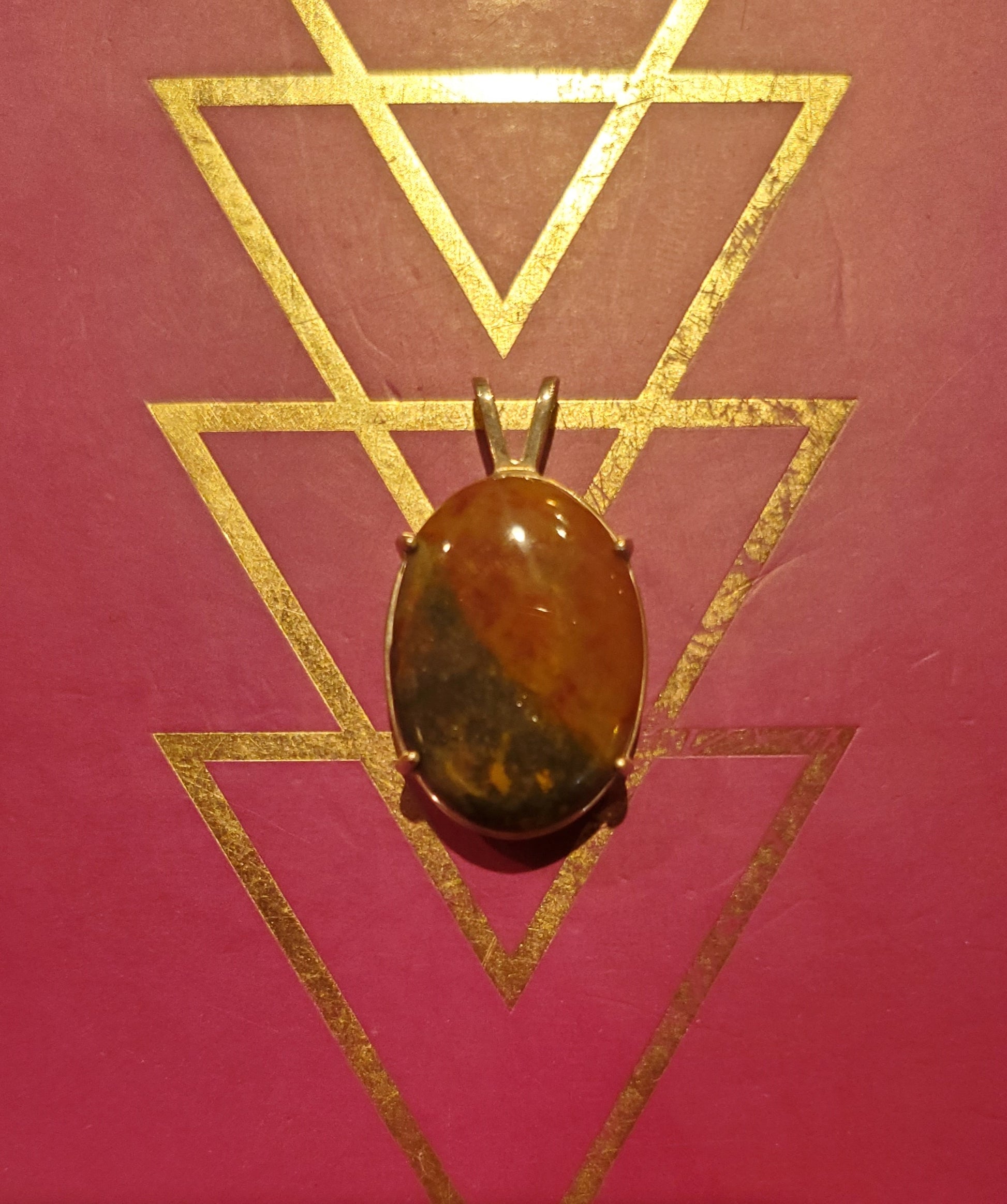 Montana City Popeye Jasper Bi-Color Necklace Pendant, 22x18mm Cab, Silver Setting