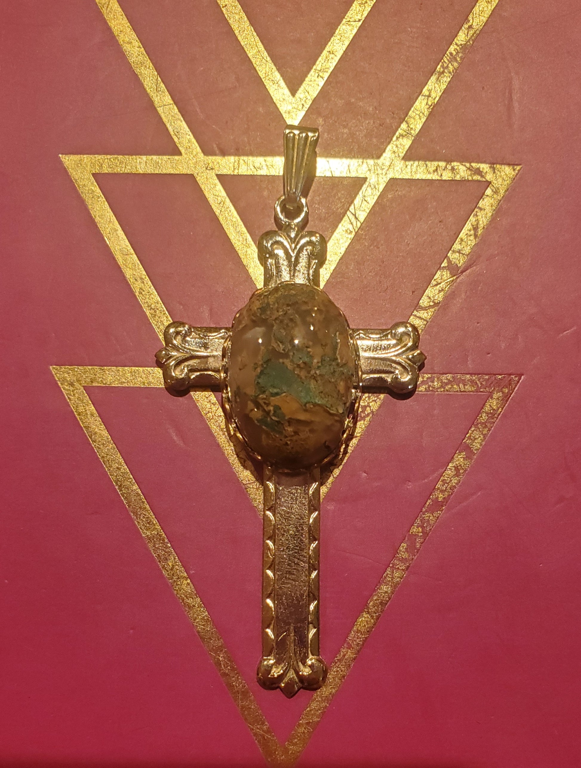 This piece of moss agate from Idaho has more of the clear agate and an area of blue moss! A unique piece. Great for anyone who like religious momentos.
