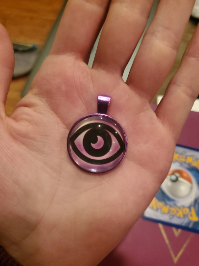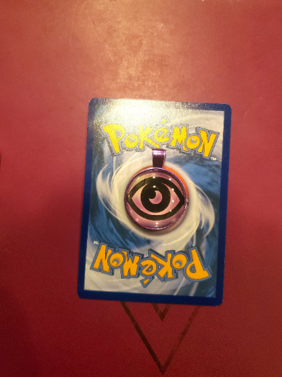 This keychain or pendant features a psychic energy! The circular graphics really pop in the accessories. I really love the little extra details that some of these pendants have. Prices may vary by rarity of card used to make the pendant. If you wish to inquire about different color backing, or want more than one of a certain style, please message us and show you the style you like in the options we have.