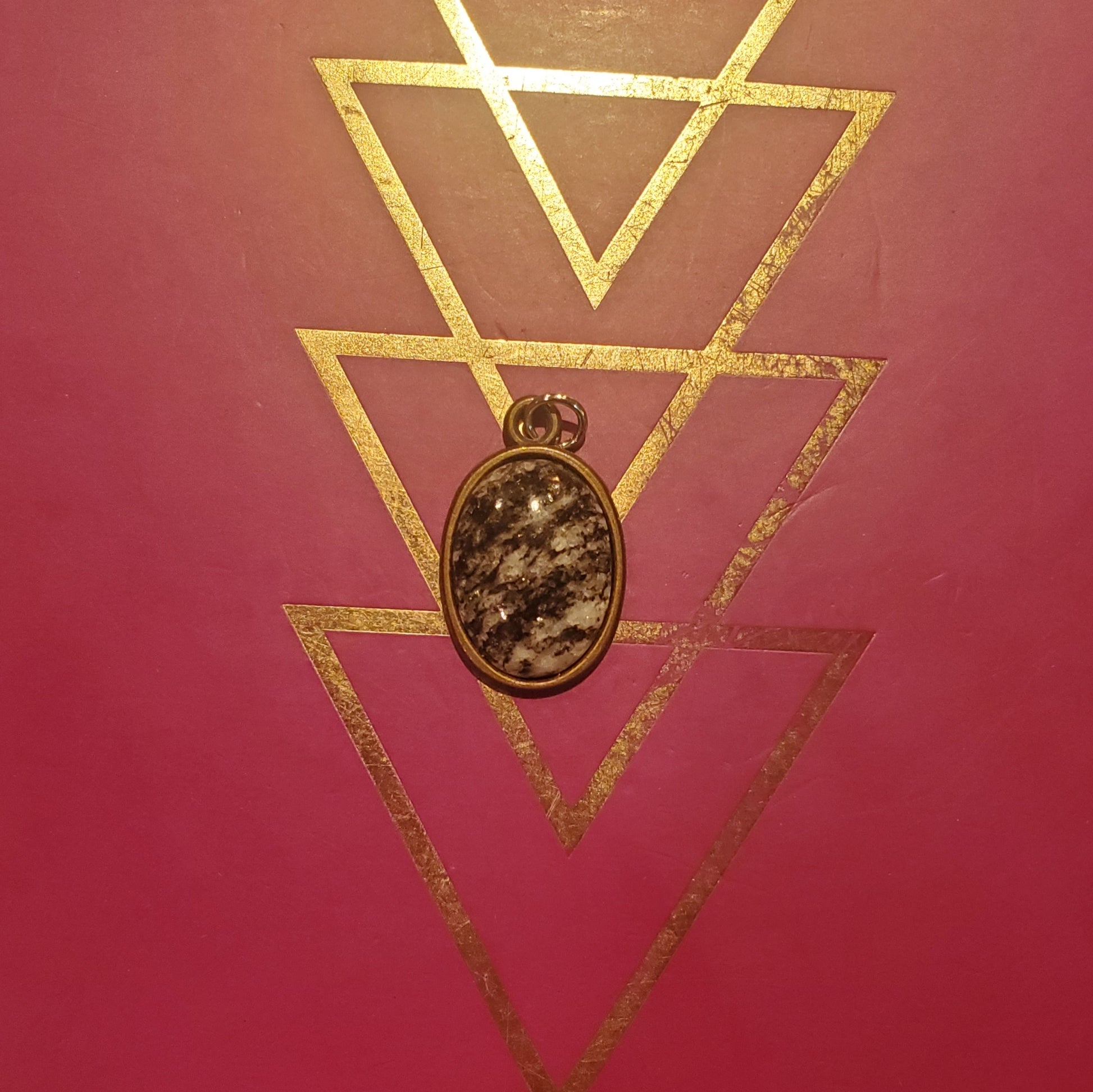 Quartz Schist Necklace Pendant, 14x10mm Oval Cab, Zinc Pendant