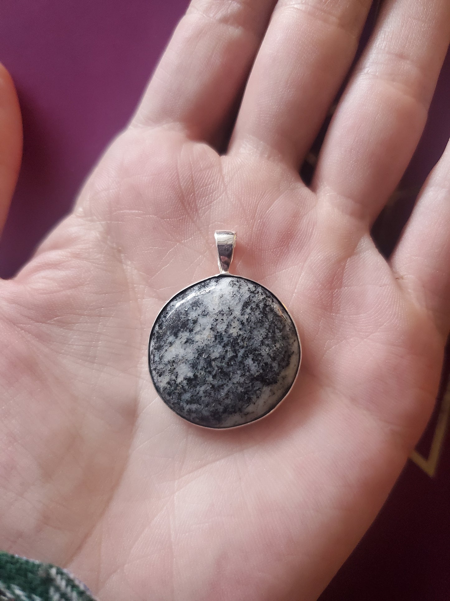Quartz Schist Pendant - Silver Setting, 25mm Round Cab