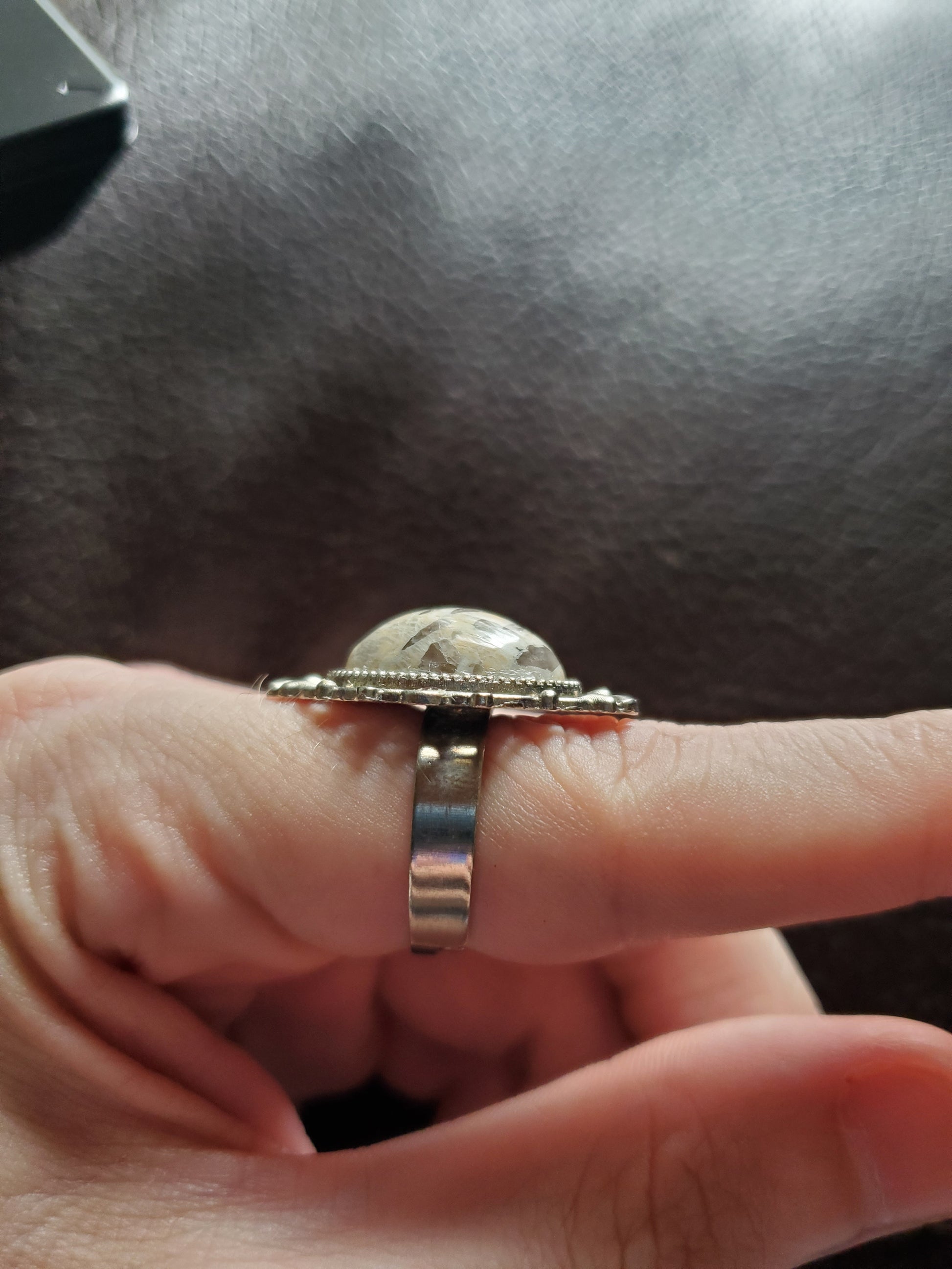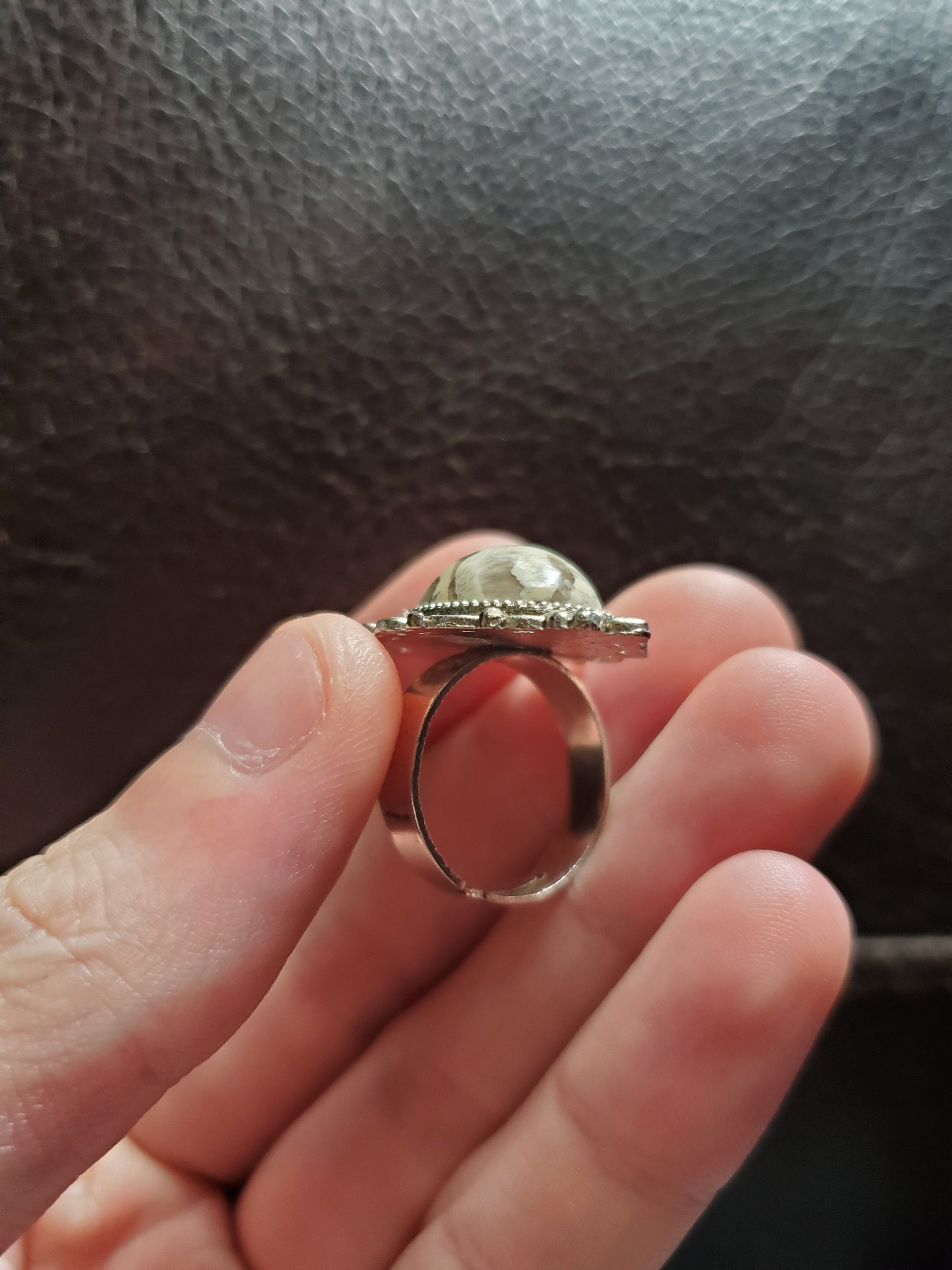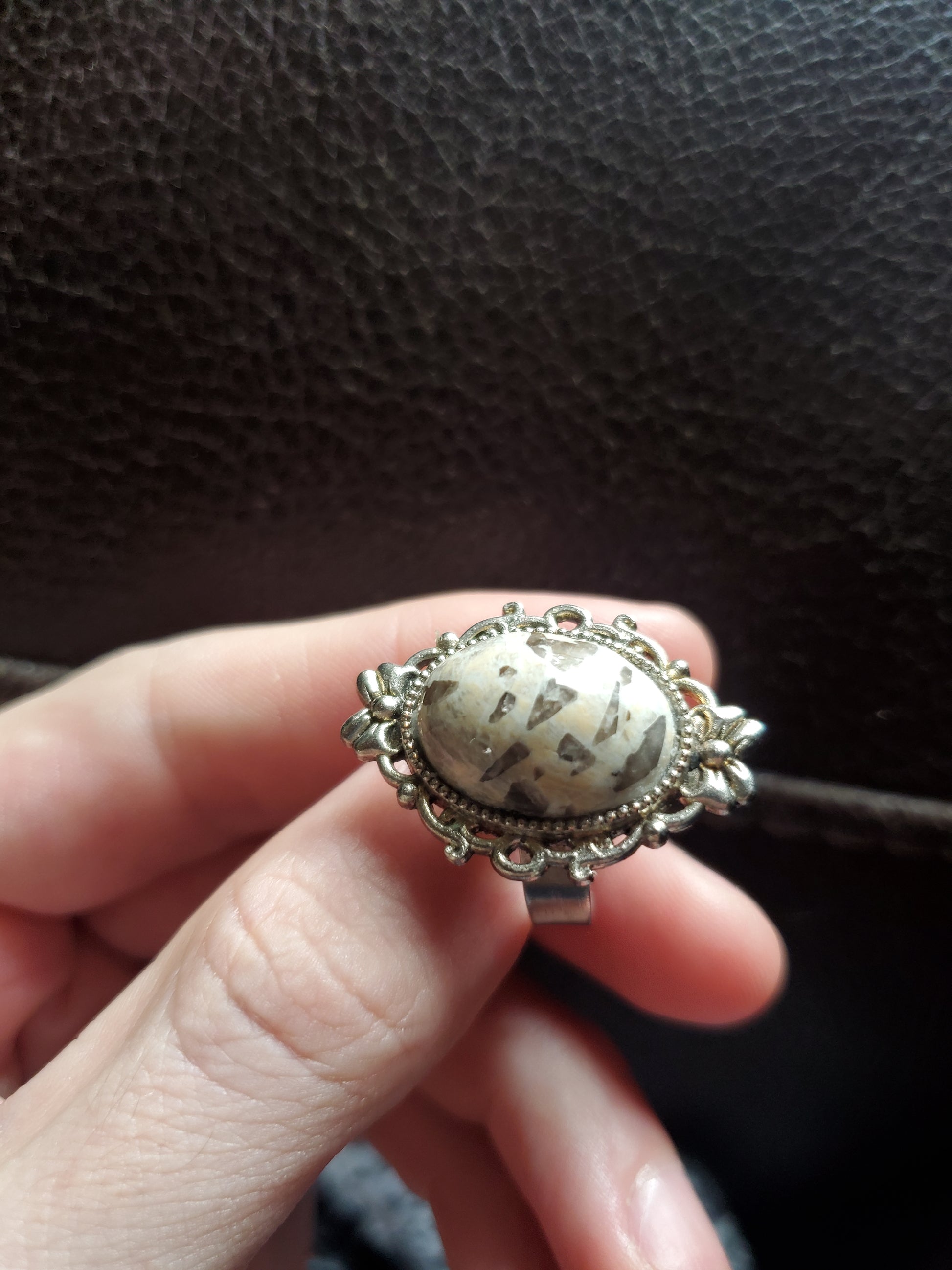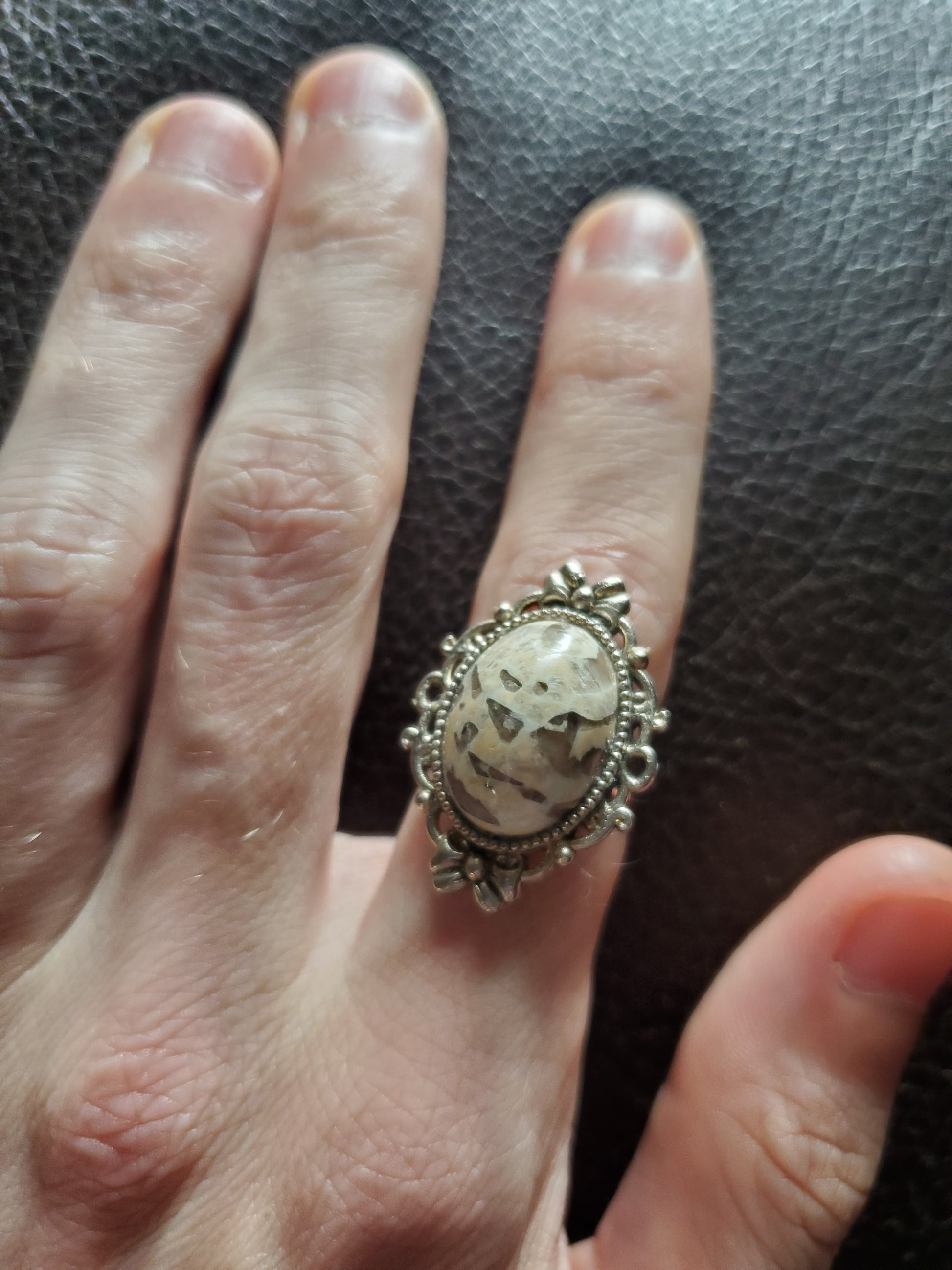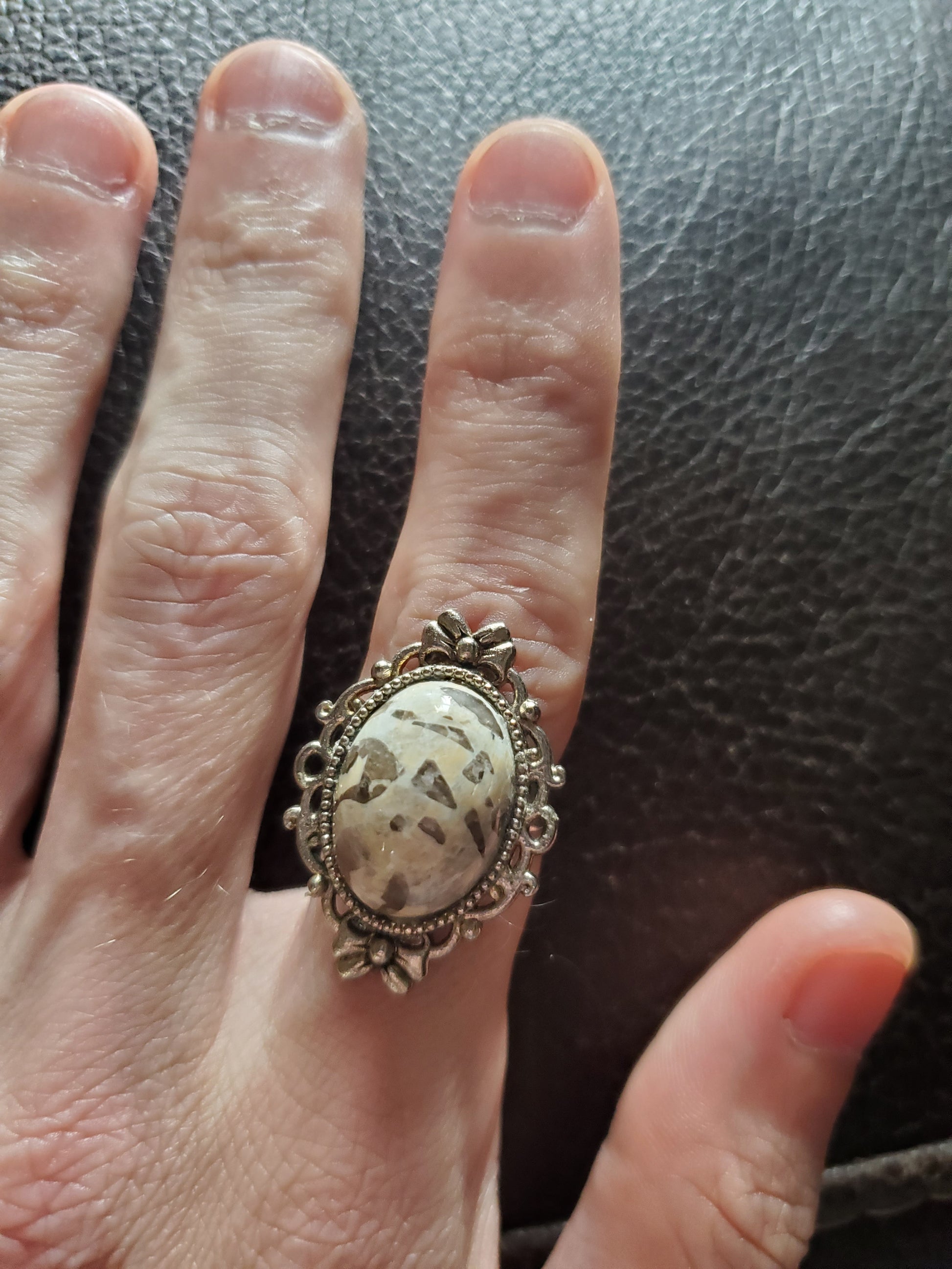 Smokey Quartz in Pegmatite Ring - Adjustable Size - Non-Silver Alloy